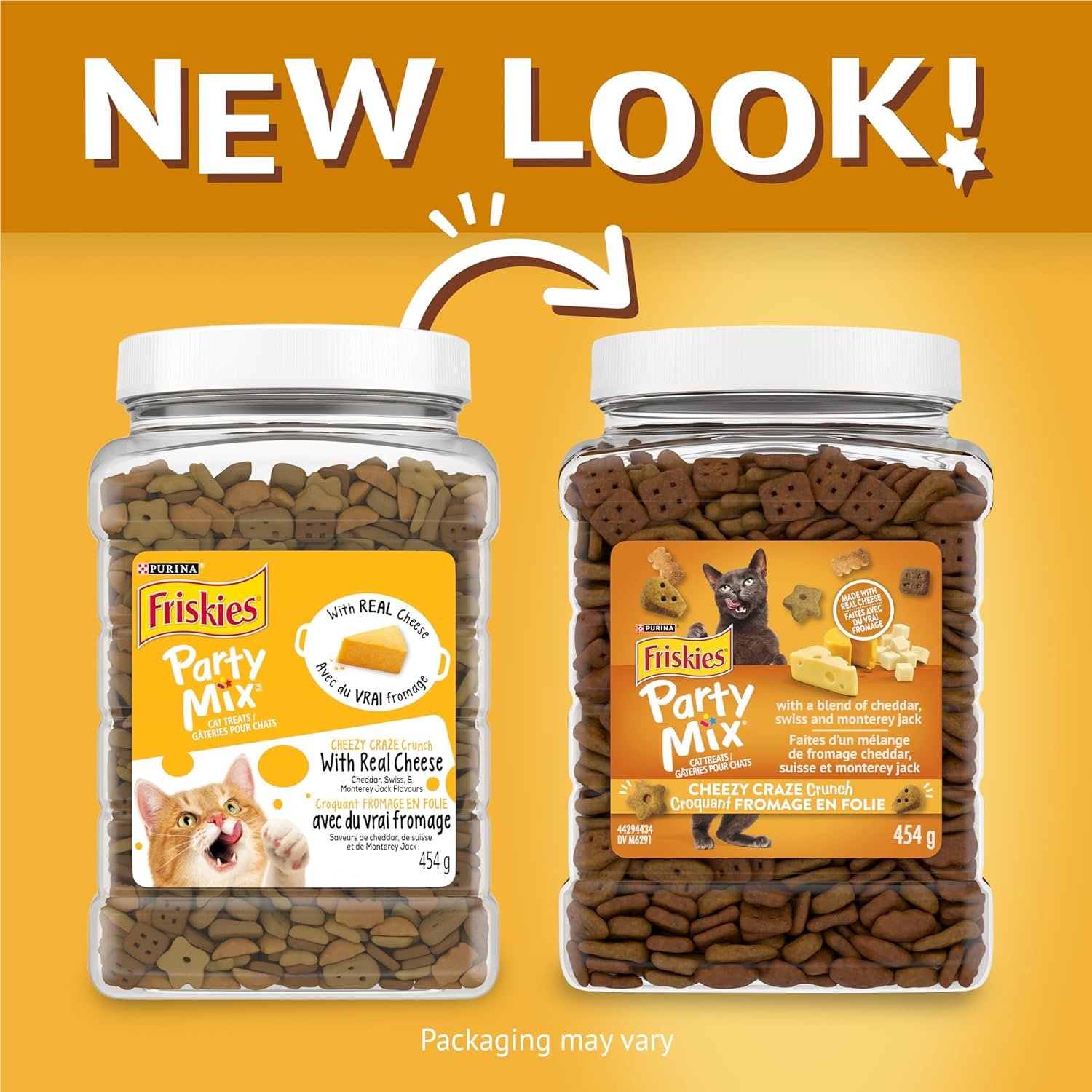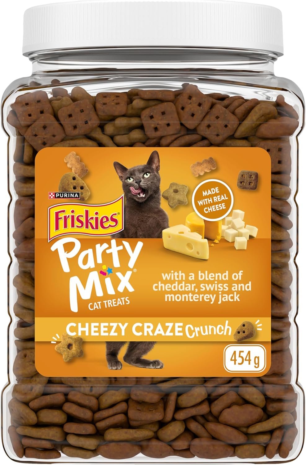 Friskies Party Mix Cat Treats, Cheezy Craze Crunch with Real Cheese – 454 g Cannister (1 Pack)