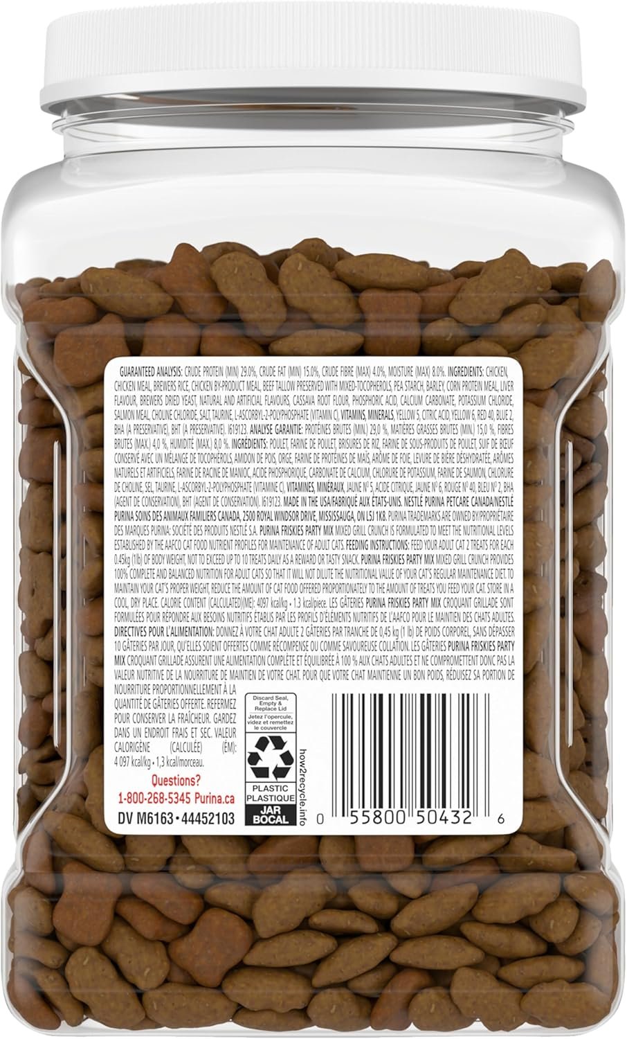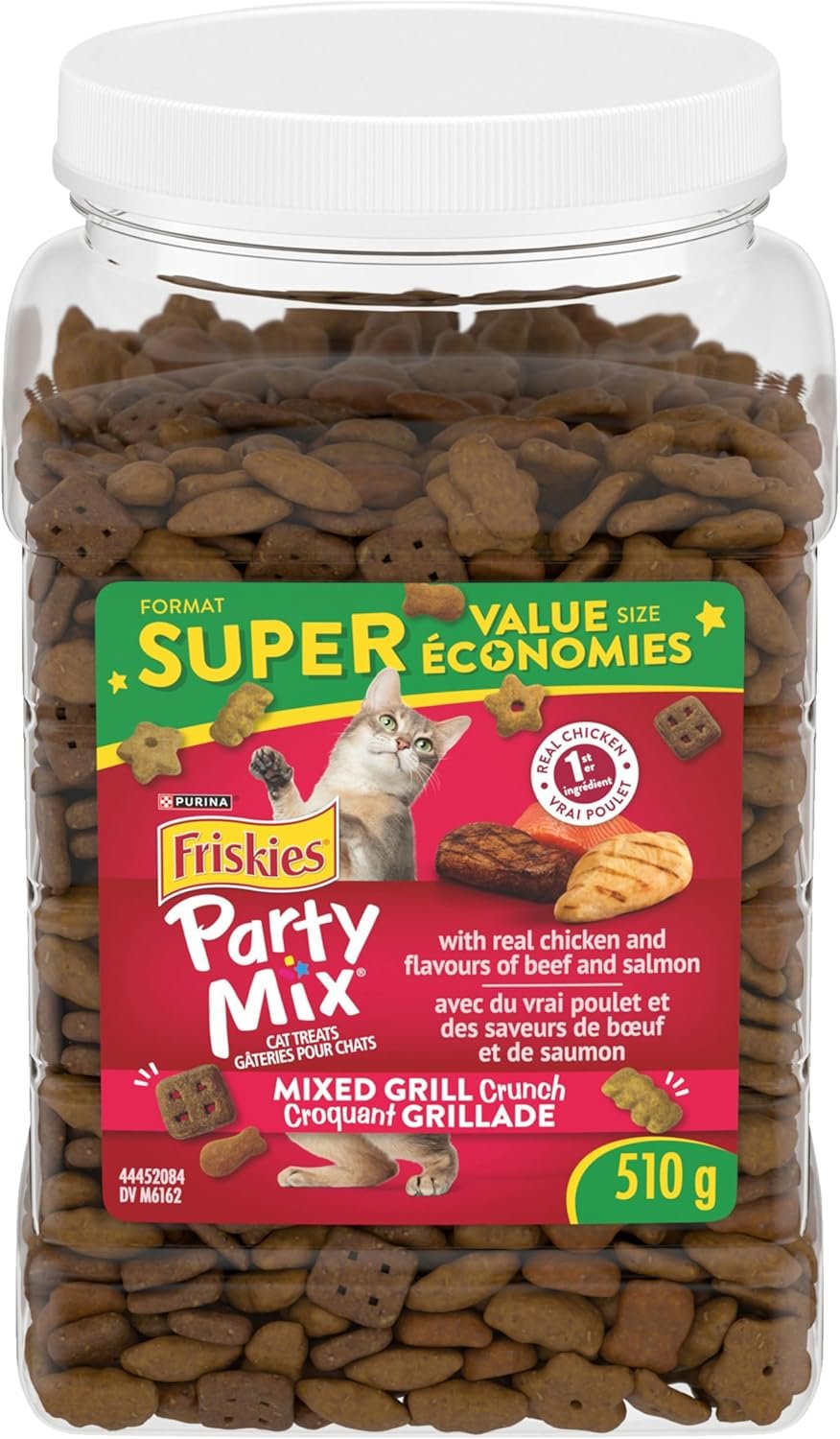 Friskies Party Mix Cat Treats, Mixed Grill Crunch with Real Chicken – 510 g Cannister (3 Pack)