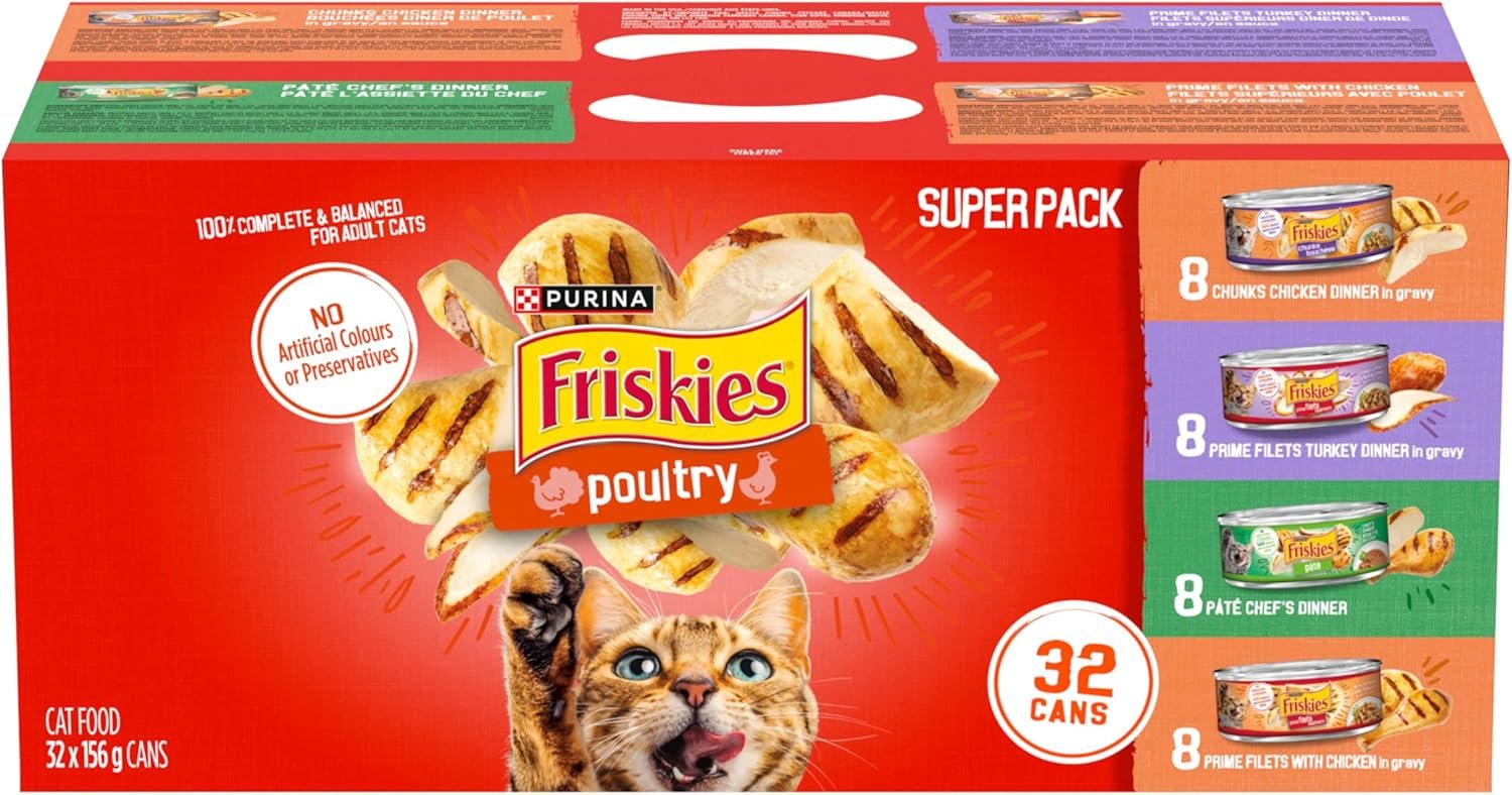Friskies Poultry Wet Cat Food, Variety Pack 4 Flavours – 156 g Can (32 Pack)