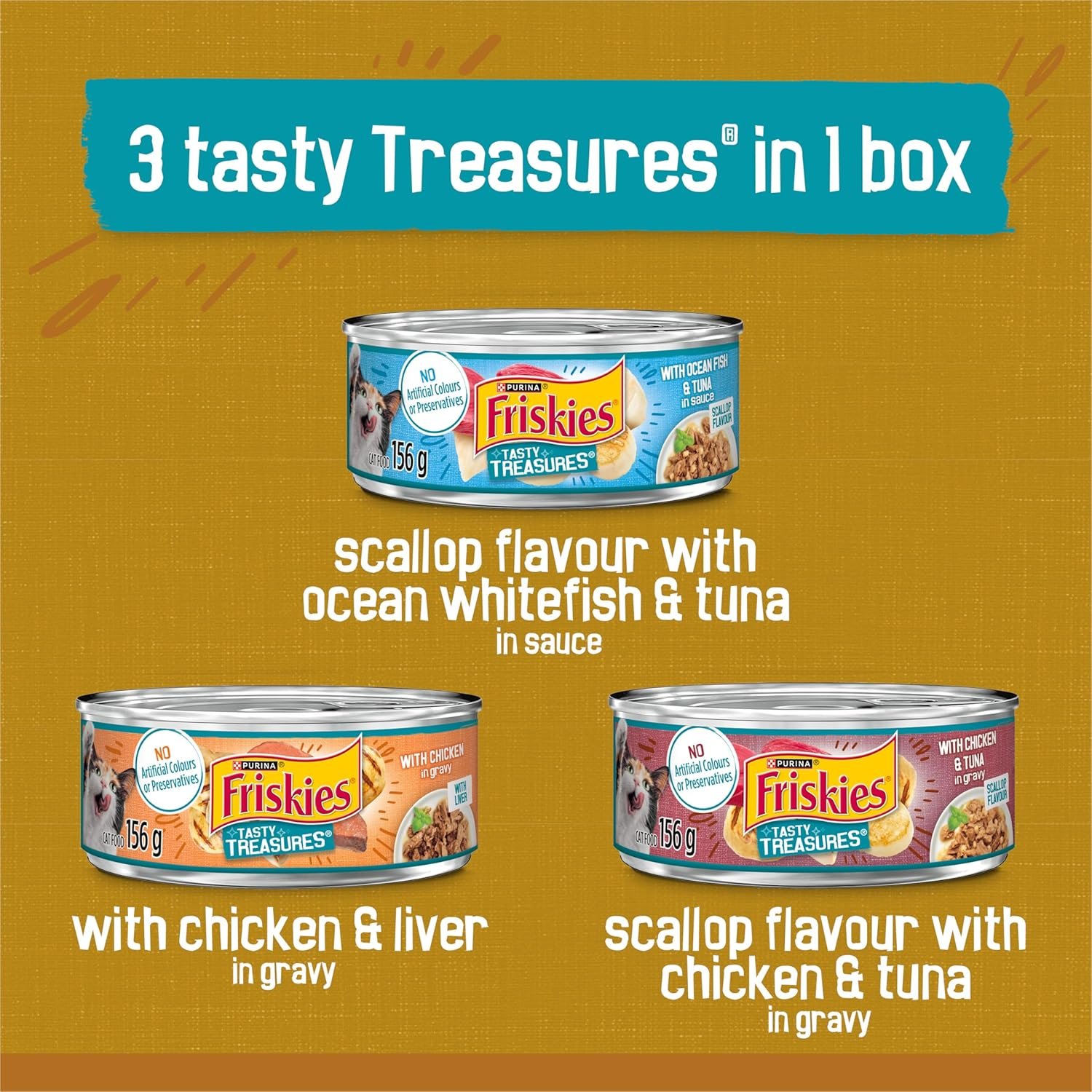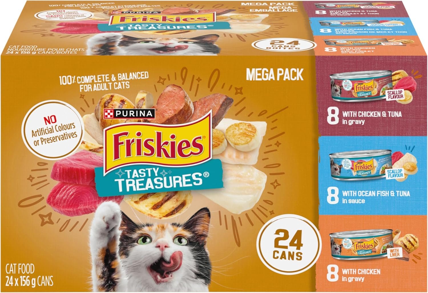 Friskies Tasty Treasures Wet Cat Food, Poultry & Fish Combo Variety Pack 3 Flavours – 156 g Can (24 Pack)