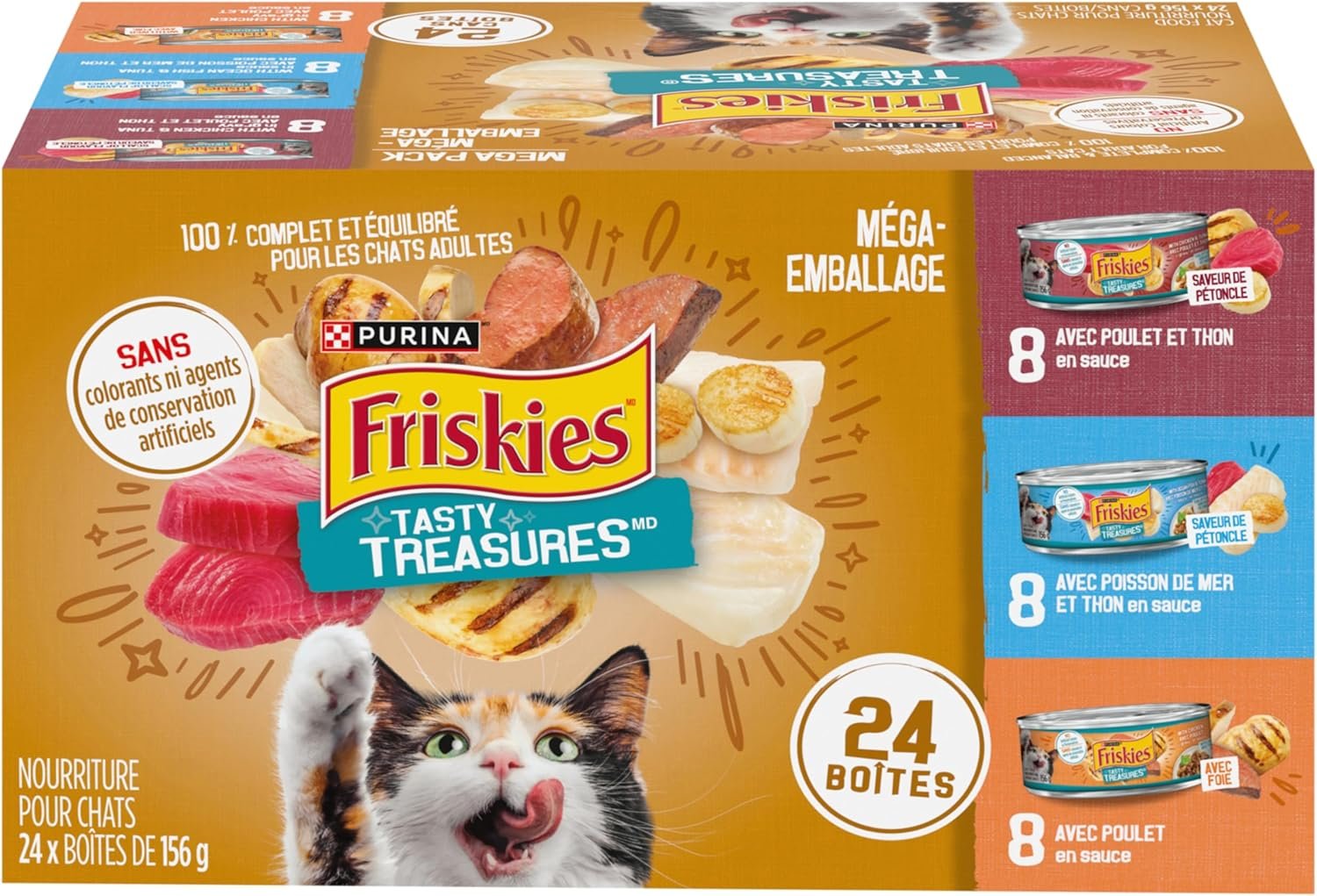 Our Friskies Tasty Treasures Variety Pack Canned Cat Food features delectable meaty morsels with the extraordinary flavour of cheese in just the right amount of savory gravy, giving your cat the flavors, textures and aromas she will crave again and again.