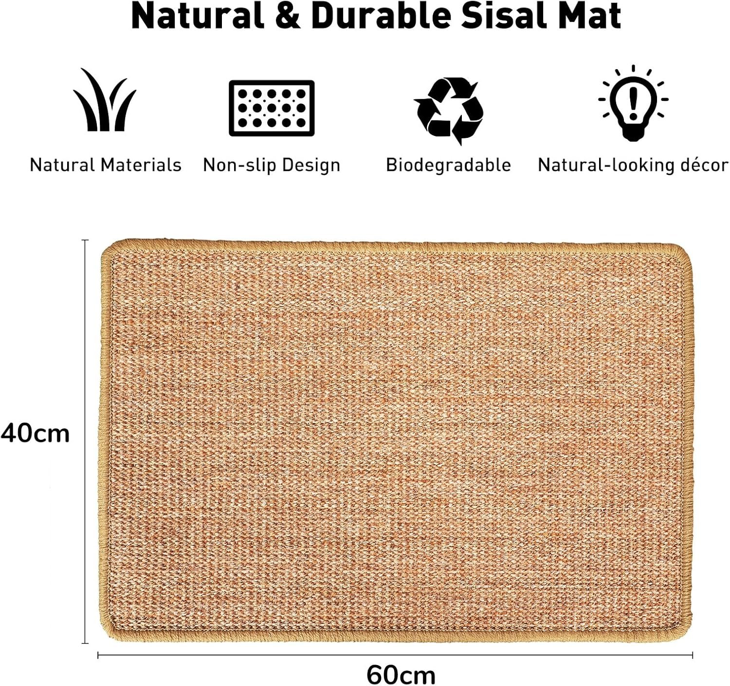 FUKUMARU Cat Scratcher Mat, 60 X 40 CM Natural Sisal Cat Scratch Mats, Horizontal Cat Floor Scratching Pad Rug, Protect Carpets and Sofas