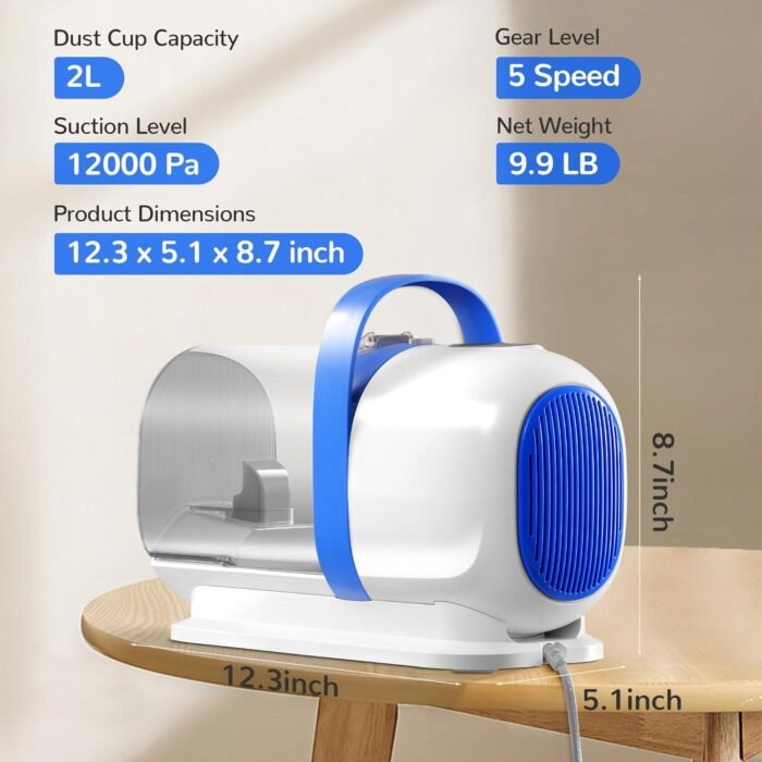 FUKUMARU Dog Grooming Vacuum & Kit, Dog Hair Vacuum with Pet Clipper Nail Grinder, 2L Dust Cup Brush Vacuum with 6 Pet Grooming Tools for Shedding