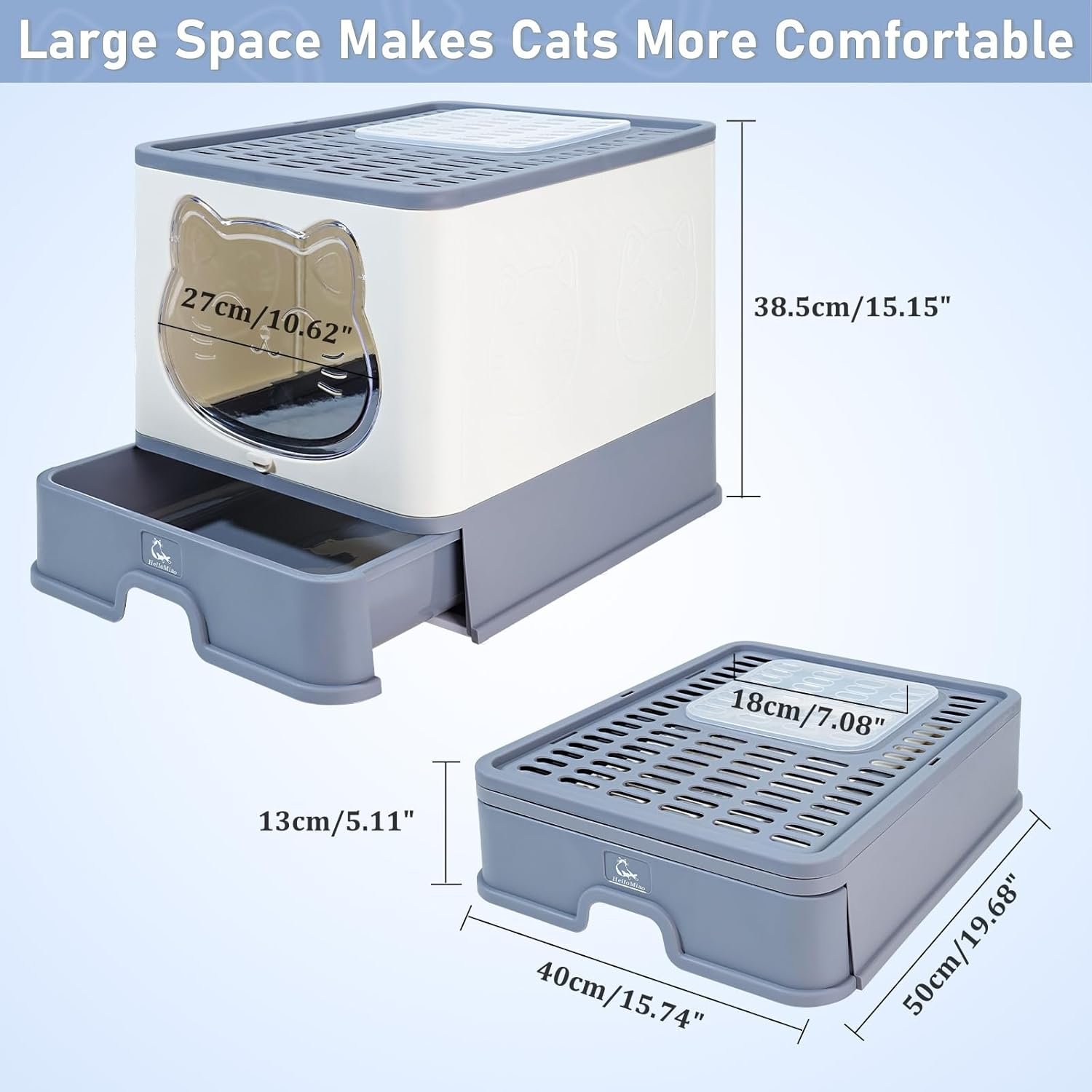 Fully Enclosed Cat Litter Box with Lid, Foldable Extra Large Cat Toilet, Drawer Type Cat Litter Tray with Plastic Scoop, Suitable for Cats Under 17.6Ib(8kg)