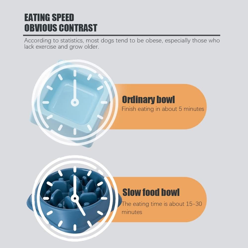 High Quality Material: The dog slow feeder bowl is made of high-strength PP materials, strong and sturdy. Beautifully polished avoids the pet’s mouth and tongue being scratched.