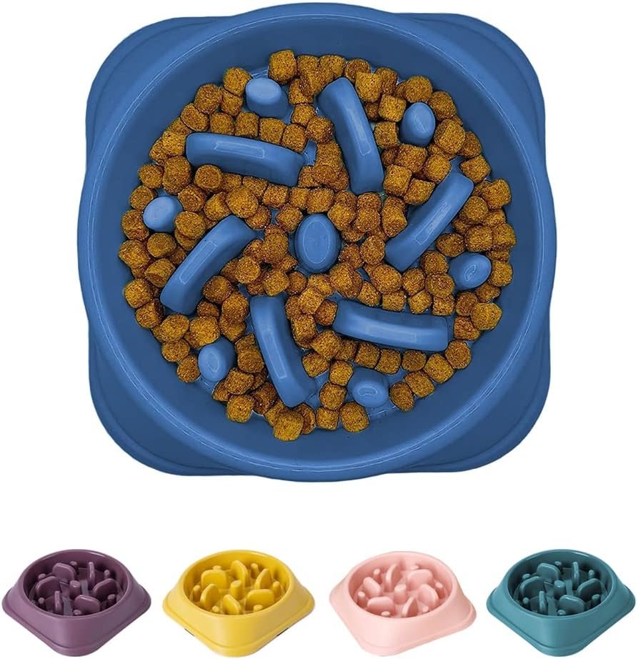 Reduce Slip Design: There are four anti-skid rubber feet in the package that can be glued to the bottom four sides of the slow feeder to prevent the bowl from slipping. The slow flow dog bowl base widened to prevent being knocked over by pets.