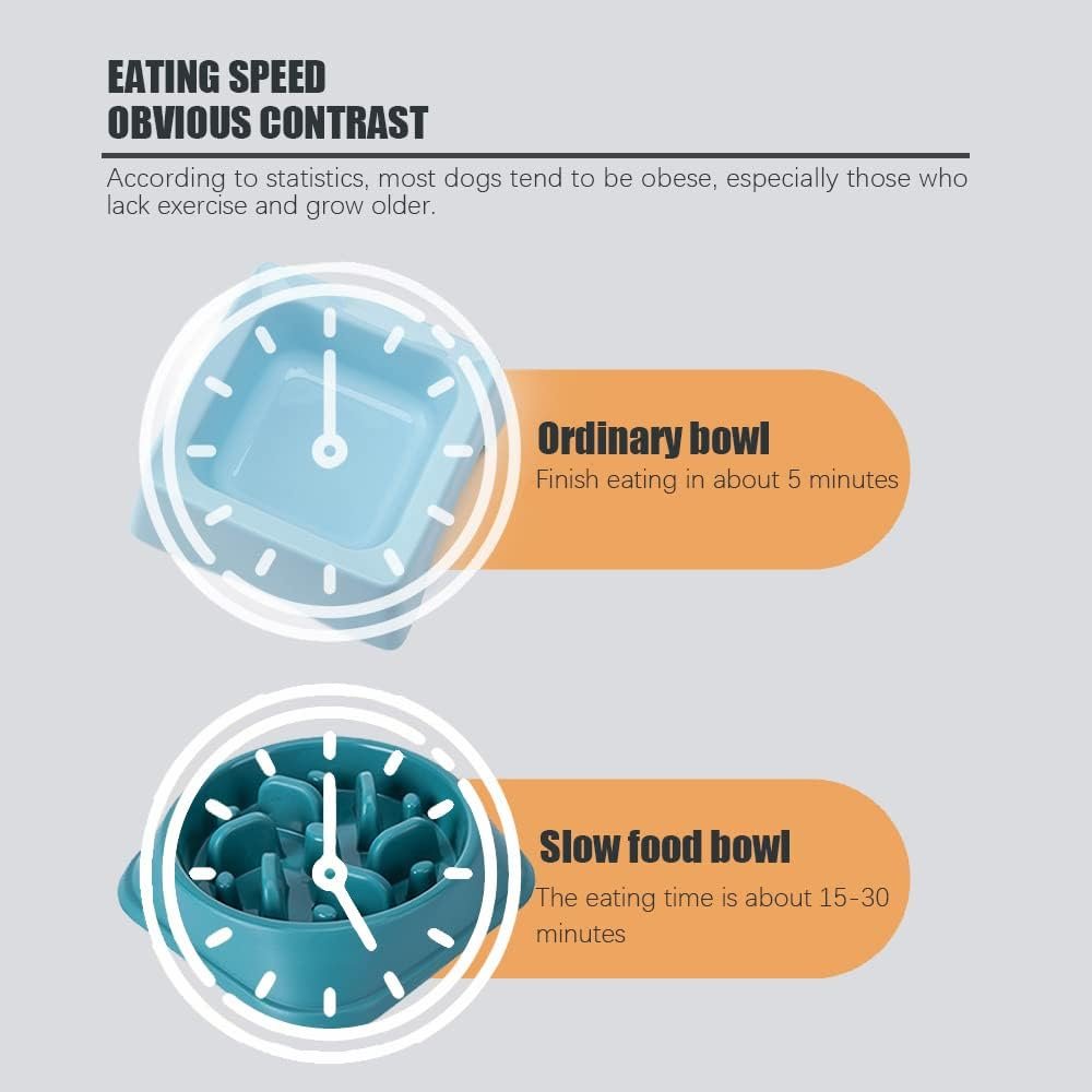 High Quality Material: The dog slow feeder bowl is made of high-strength PP materials, strong and sturdy. Beautifully polished avoids the pet’s mouth and tongue being scratched.