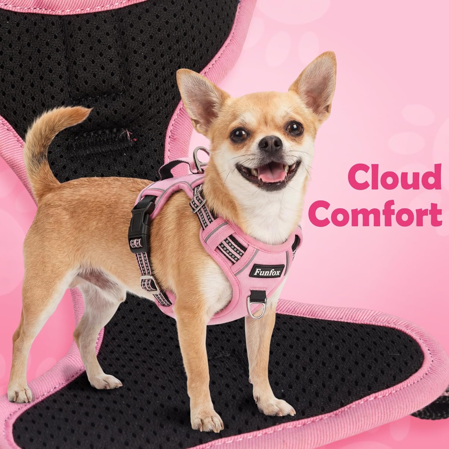 Funfox Dog Harness Small Breed, No Pull Puppy Harness with Vertical Handle, 2 Leash Clips, Reflective Strips Night Walking, Anti Pull Adjustable Pet Vest Size for Small Breed, Pink S