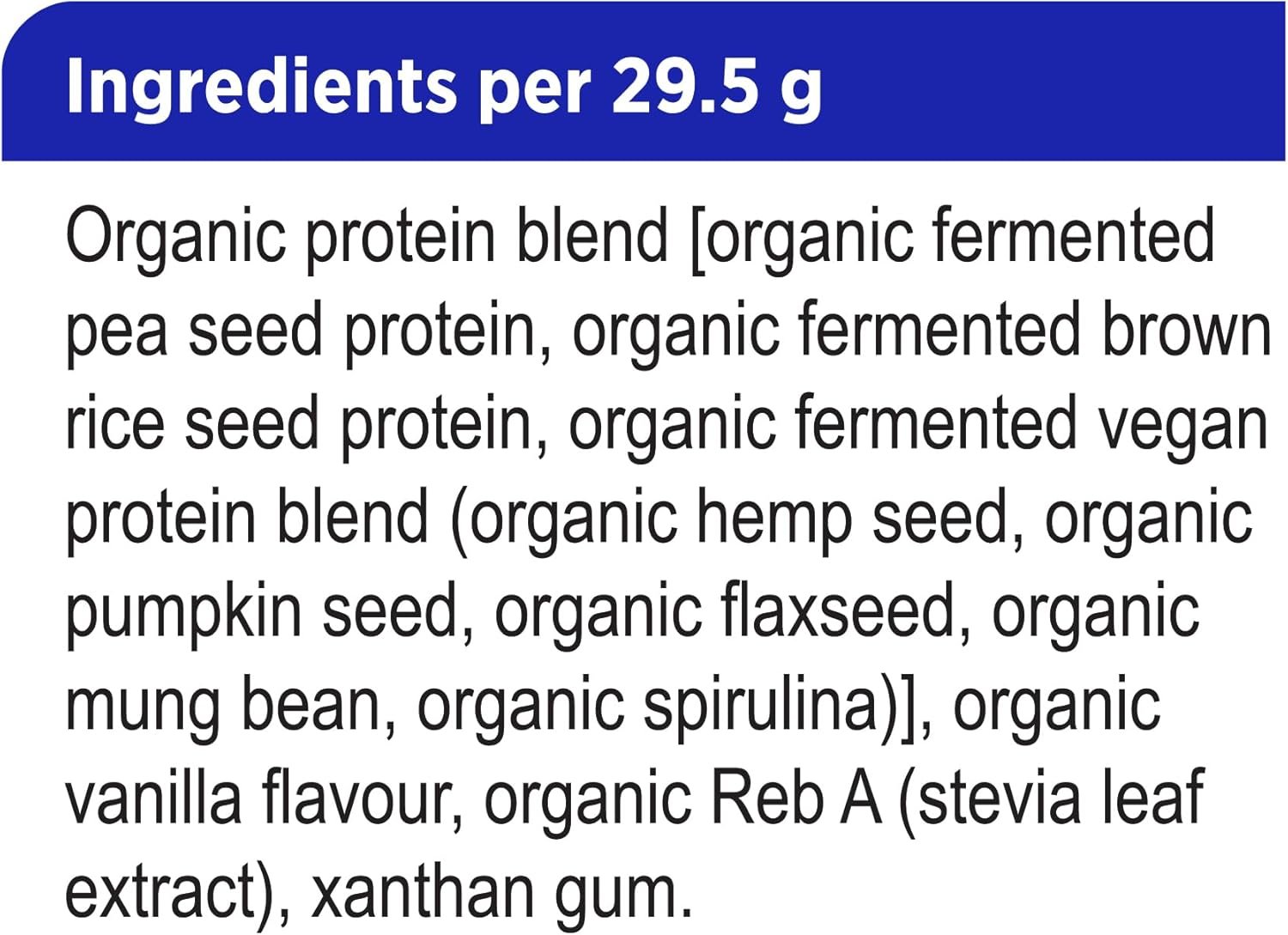 Each serving of fermented organic vegan proteins+ is filled with 20g of protein from 7 plant-based sources, including yellow pea, brown rice, spirulina, flaxseed, hempseed, pumpkin and mung bean, for a balanced amino acid profile.