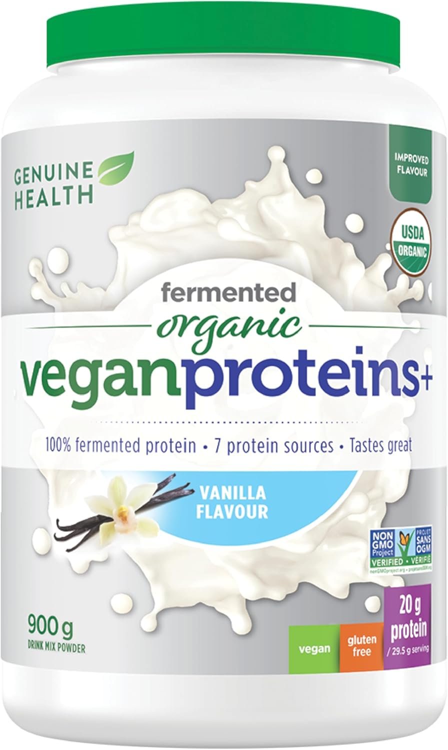 Genuine Health Fermented Organic Vegan Protein – Vanilla – Powder Mixes Well into Protein Shakes – Vegan, Sugar Free, Gluten Free, USDA Organic, Non GMO Project Verified – 900g – 30 Servings