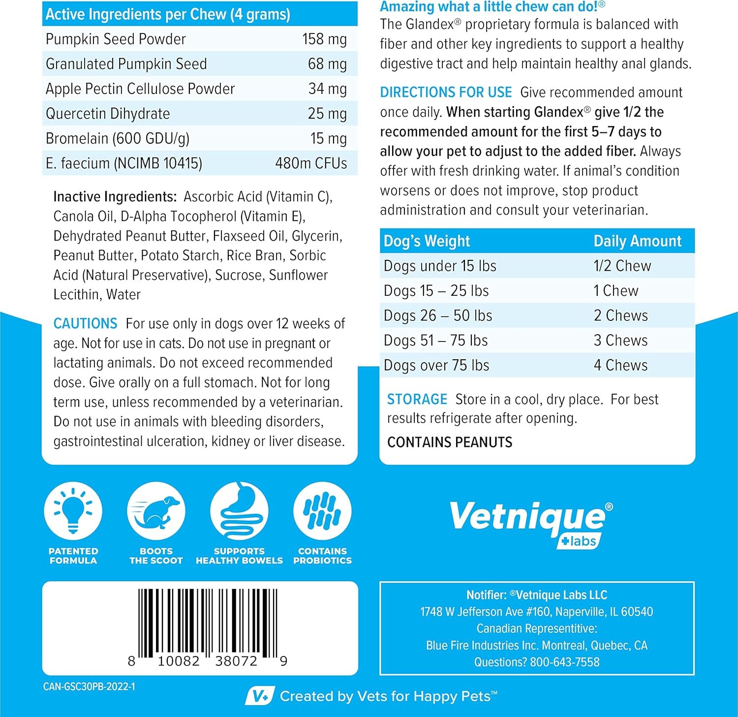 SUPPORTS HEALTHY ANAL GLANDS: Glandex is scientifically formulated to support healthy anal glands. With key ingredients including pumpkin seed, Glandex promotes natural emptying of the anal glands & supports digestive health & seasonal allergies.