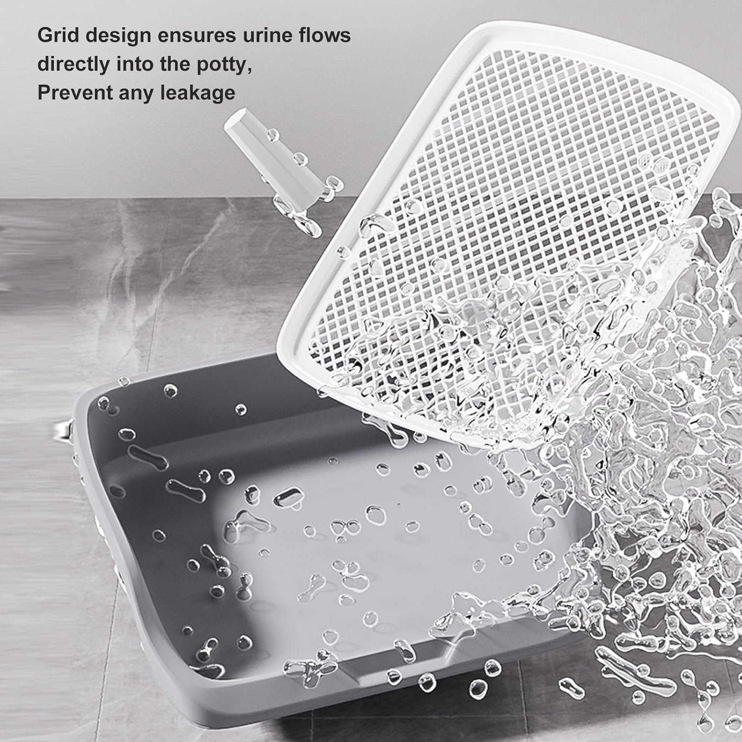 Potty Training Solution: pee pad holder with a special design for easy urine collection, featuring a high capacity storage for large urine amounts; The unique diversion column and quick drainage system ensure a clean and dry experience, even if you’re away for a long time; No need to worry anymore.