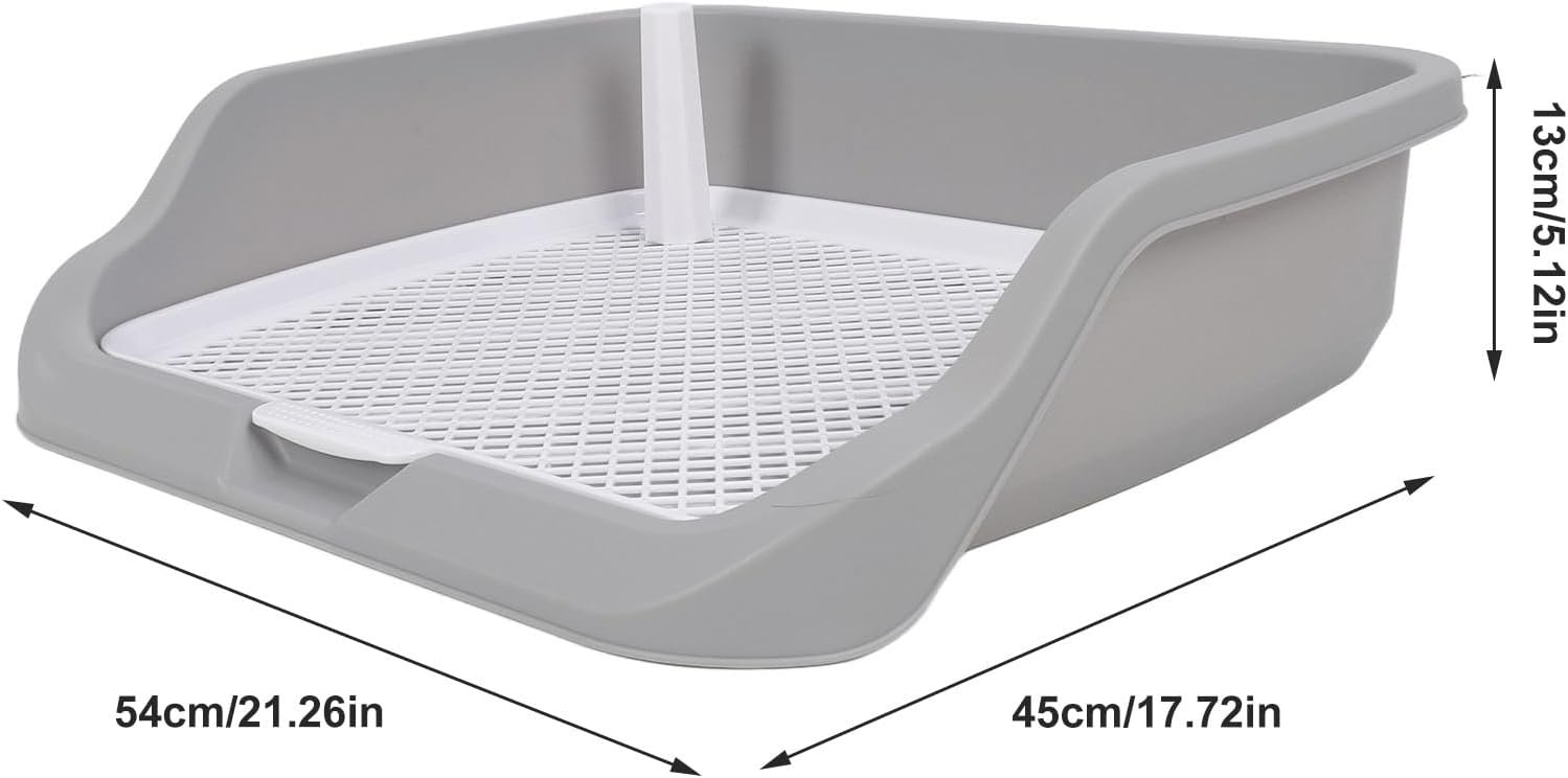 Hassle Clean Up: say goodbye to messy puppy pads; Our removable mesh grate makes cleaning a breeze, simply wash with soap and water daily to keep the area sanitary and odor ; Pet pads size is about 21.26 x 17.72 x 5.12, suitable for small and medium dogs.