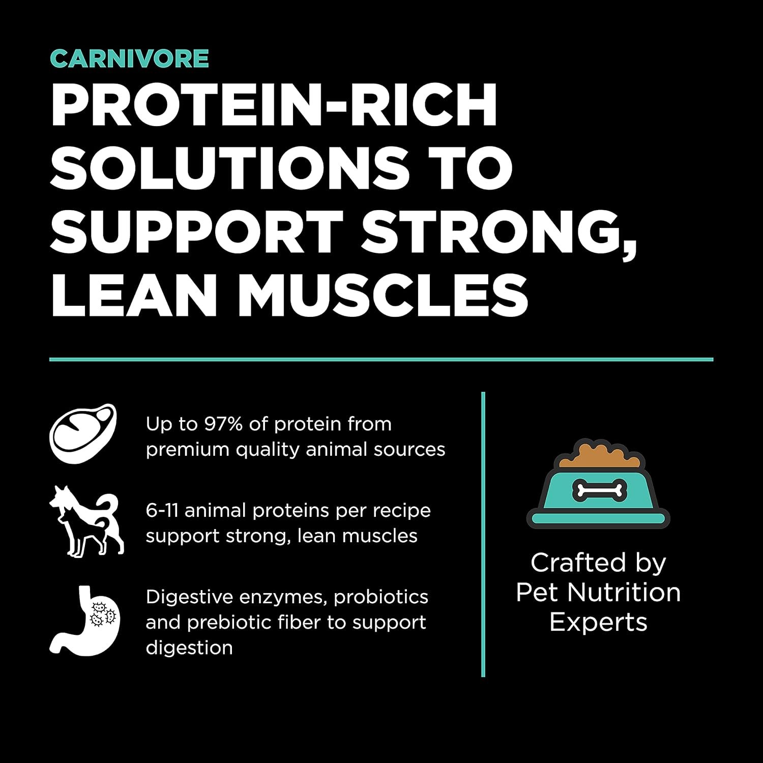 Protein-Rich to Fuel Strong, Lean Muscles: Our highest-protein product line delivers recipes rich in essential amino acids from premium-quality animal proteins to support strong, lean muscles and fuel high-energy dogs