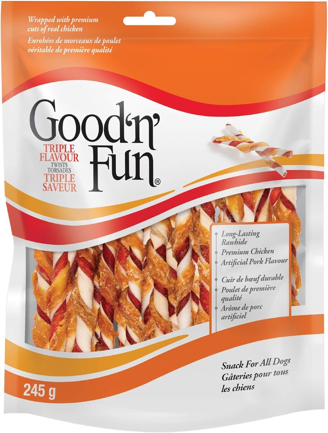 LONG-LASTING: Good ‘n’ Fun Triple Flavor Twists are truly delightful, long-lasting rawhide treats your dog will love.