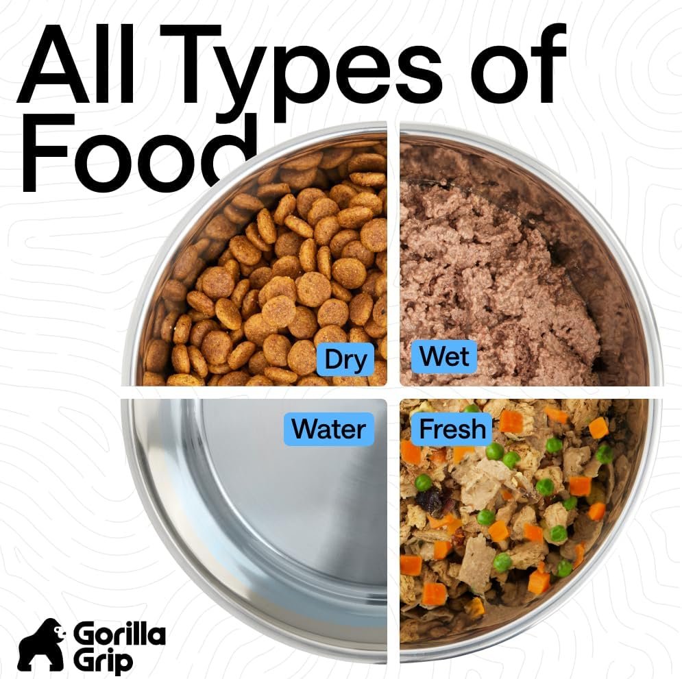 The Gorilla Grip set of 2 Stainless-Steel Dog Bowls are perfect for your pet’s meal-time. Constructed with 100% dishwasher safe, food grade materials these bowls are designed to withstand the test of time.