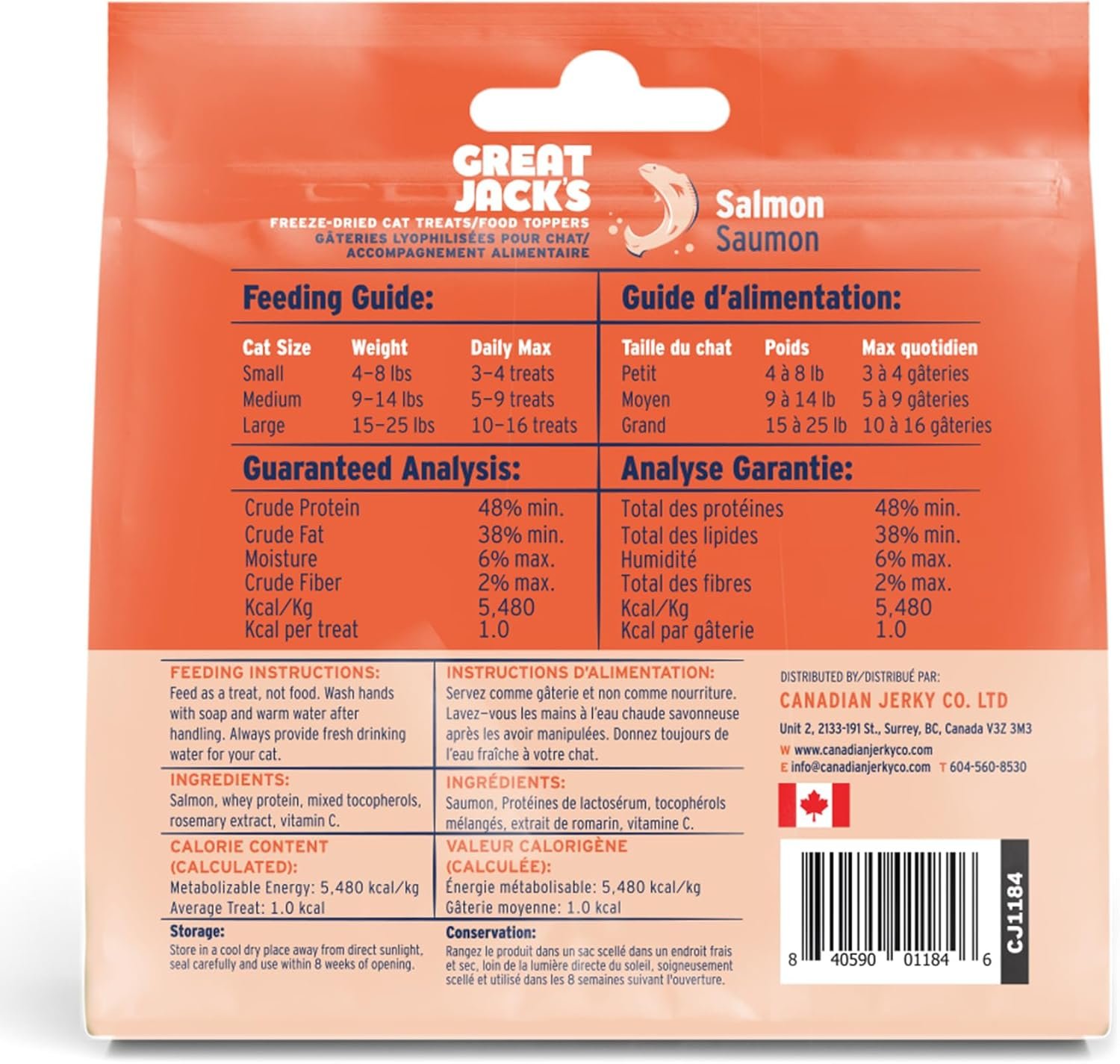 Great Jack’s Cat Treats Pouch Freeze-Dried Salmon Snacks Omega 3 Cat Treats for Your Furry Friends 1 OZ / 28G