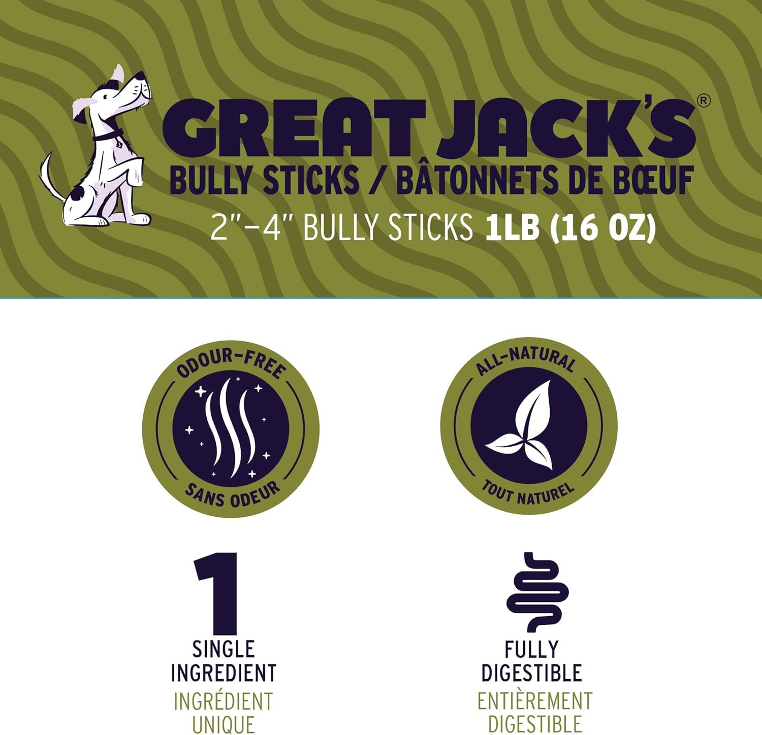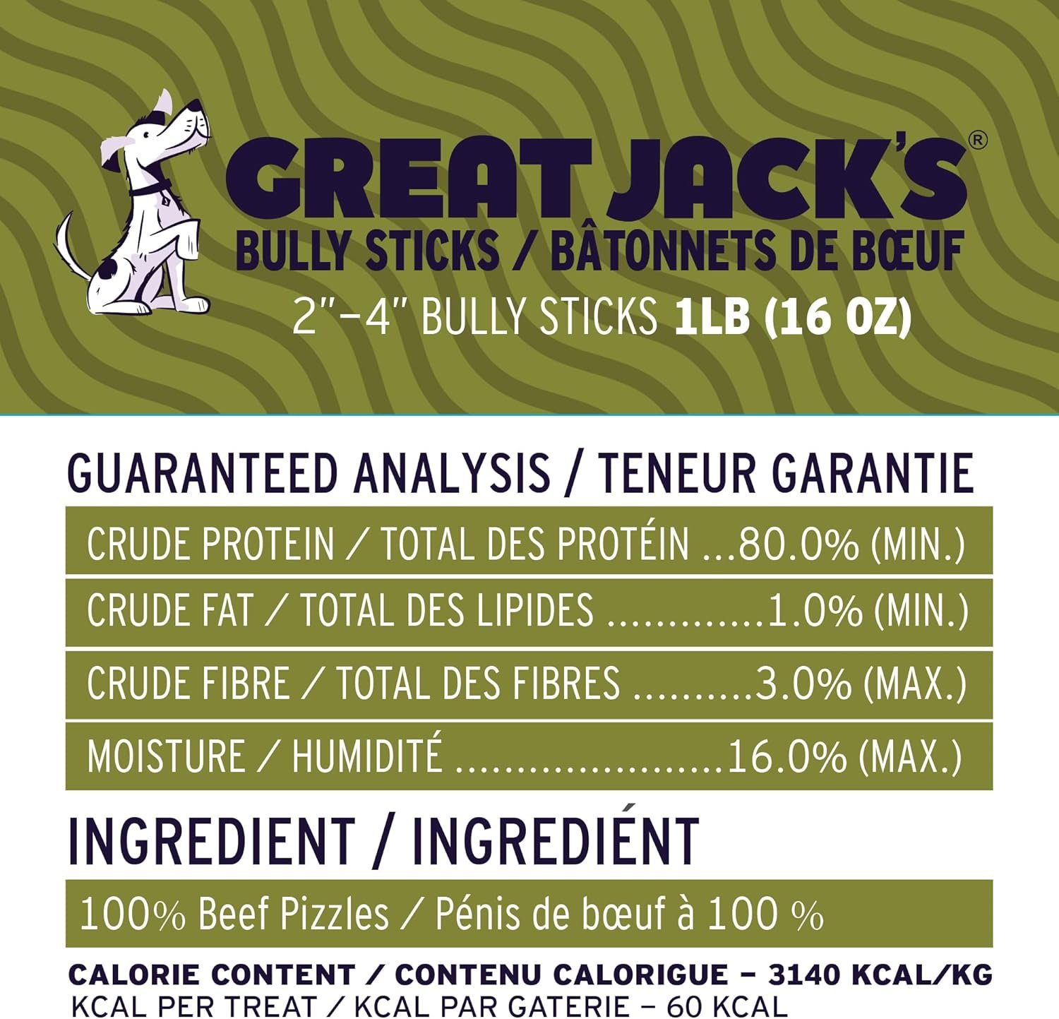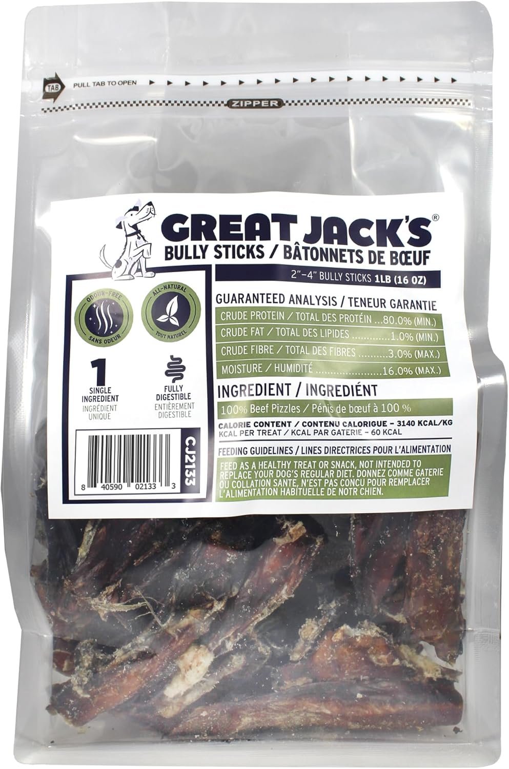 Great Jack’s Dog Treats Pouch Air-Dried Beef Bully Bars Stick 2″- 4″ with Single Ingredient Made in Canada Natural Dog Chews Food Topper Snacks Treats for Your Furry Friends 1lb