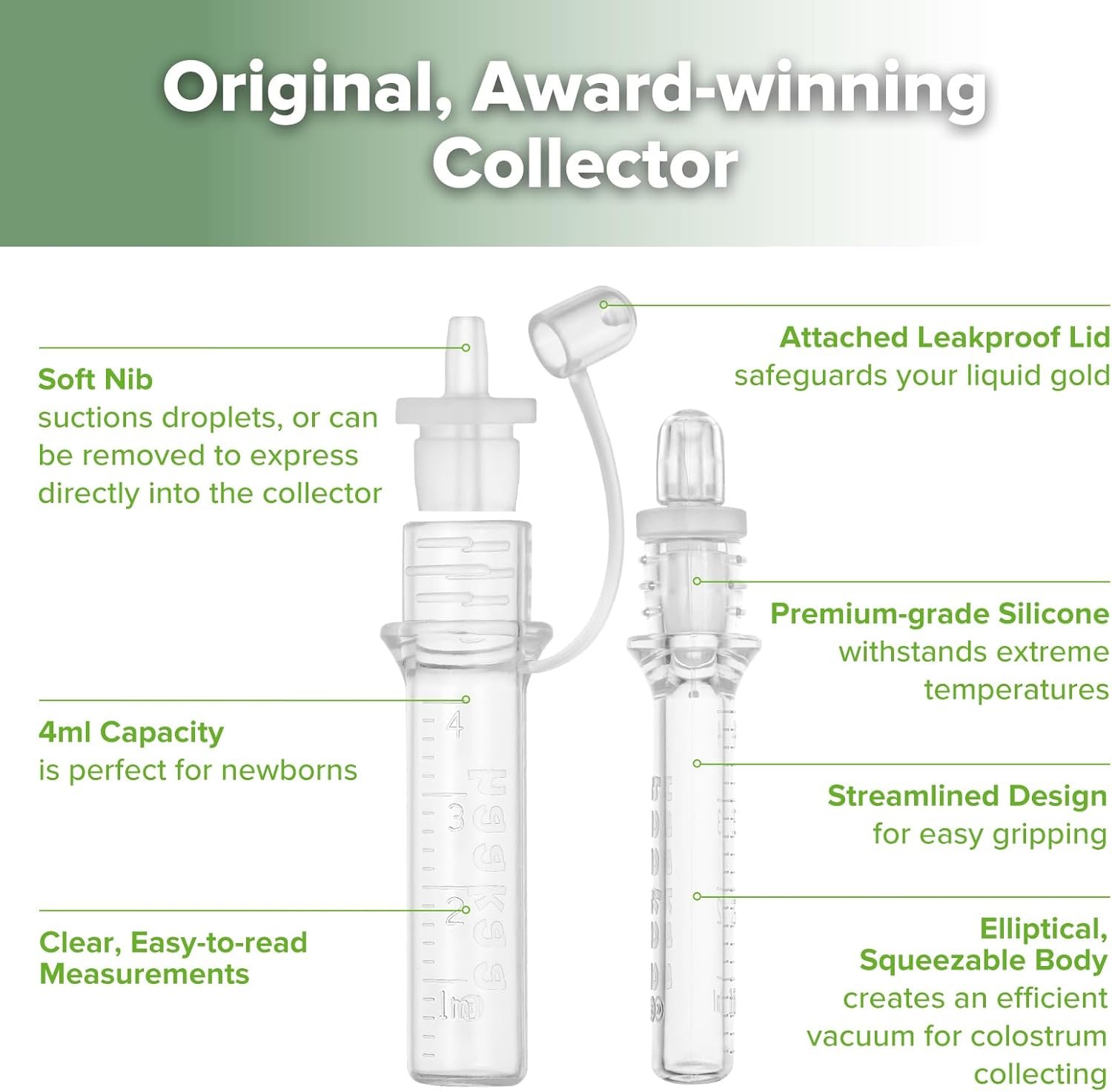 COLLECT, STORE, FEED- haakaa silicone colostrum collector is multi-use, three-in-one design. You can use it to collect, store and feed colostrum from the same collector. No need to transfer your colostrum between containers. Perfect tool for mum and baby.