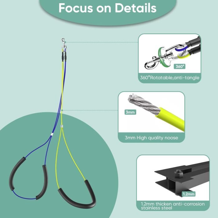 【Dual Nooses, Double Comfort 】This pet grooming stand is equipped with 2 no-sit haunch holders and a loop noose, which can quickly adjust the right size, preventing your pets from falling out of the table and make it super easy to finish the grooming at home