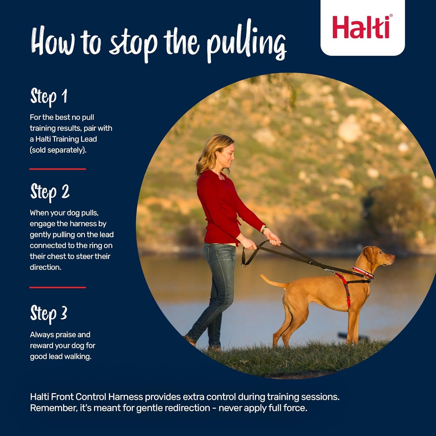 BETTER TOGETHER: To get the best no pull training experience, use the Halti Front Control Harness with our double clip Halti Training Lead.