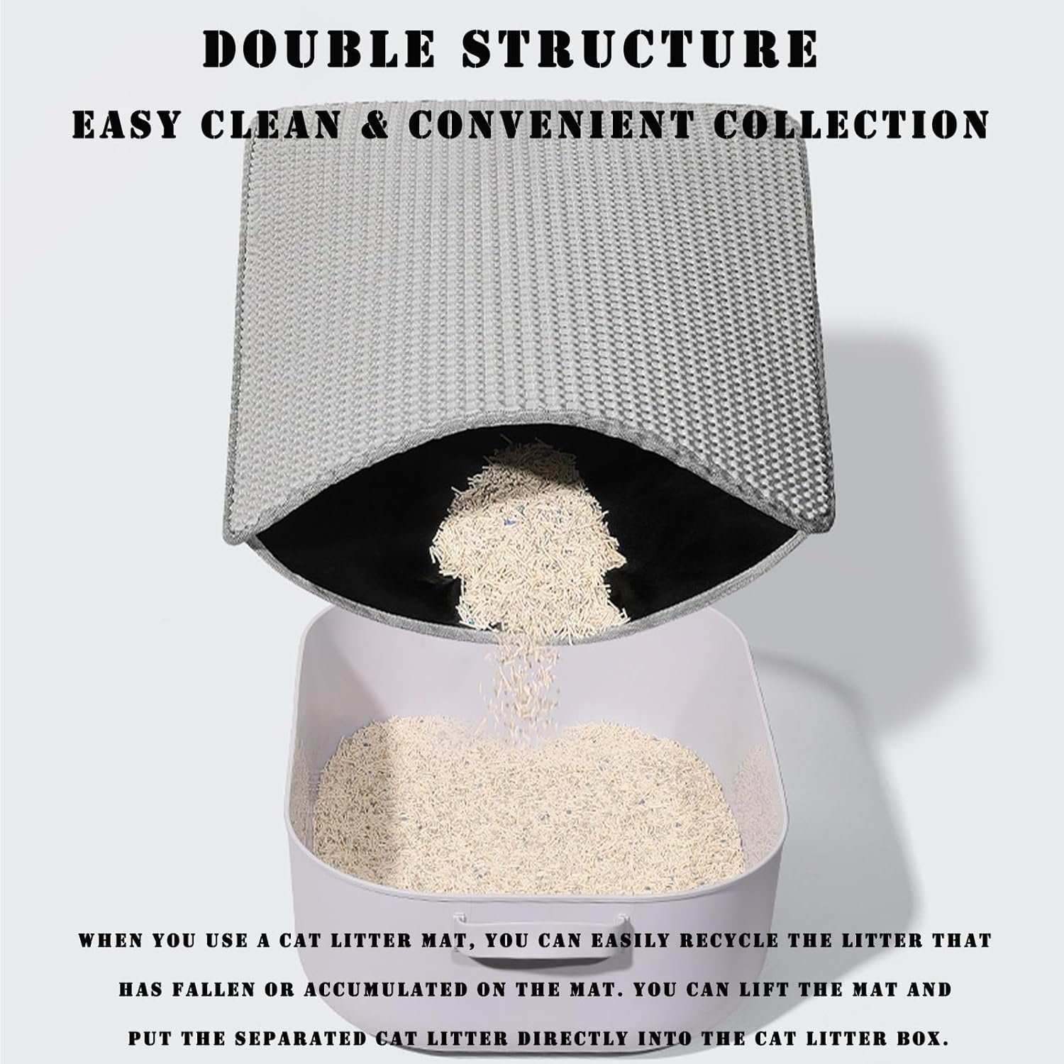 😸【Easy to Clean & Convenient to Collect】You can lift the mat and place the litter into the litter box. You can reuse the cat litter collected inside the mat, keeping the environment around the cat litter box clean and save your cleaning time. If it gets dirty, you can wash it with water.