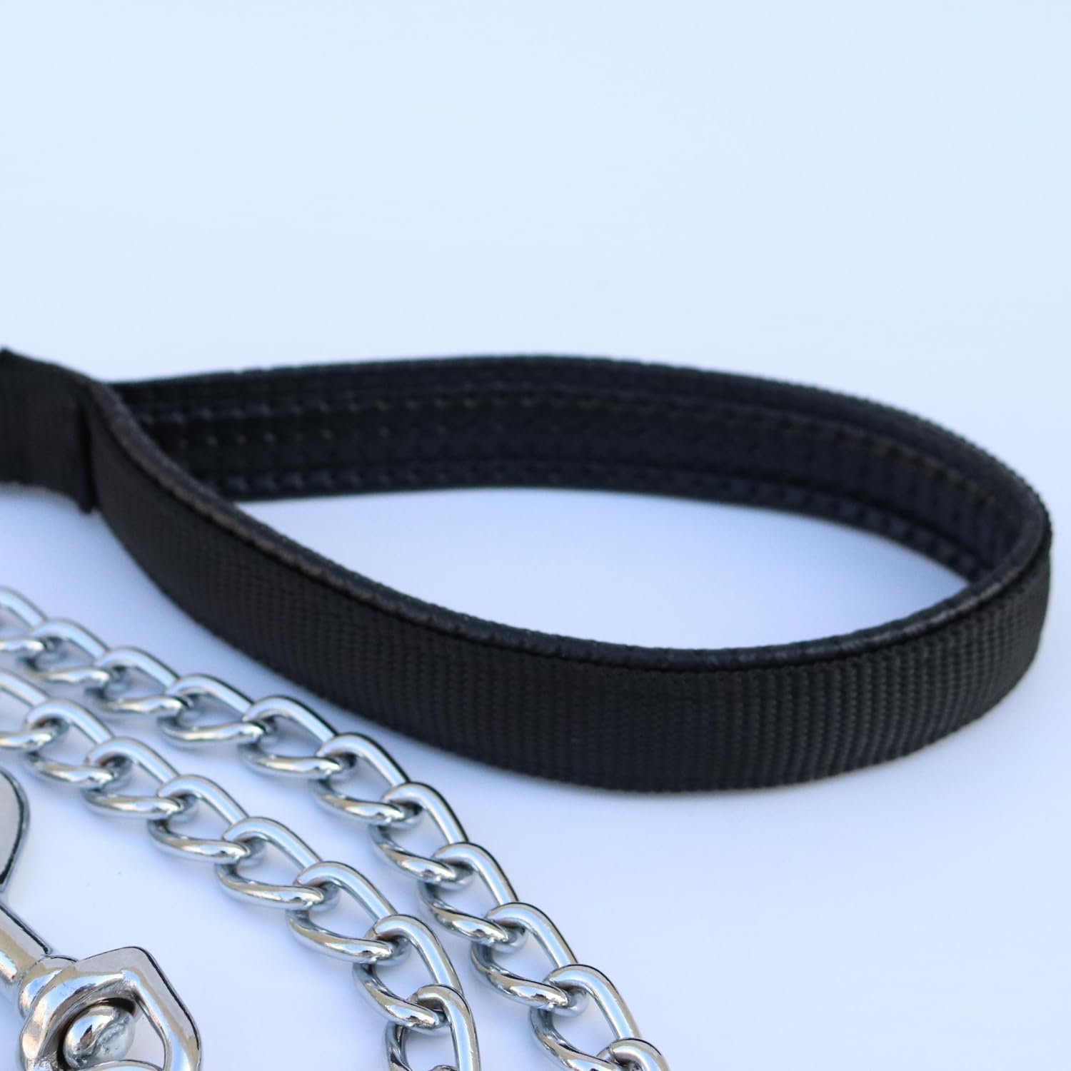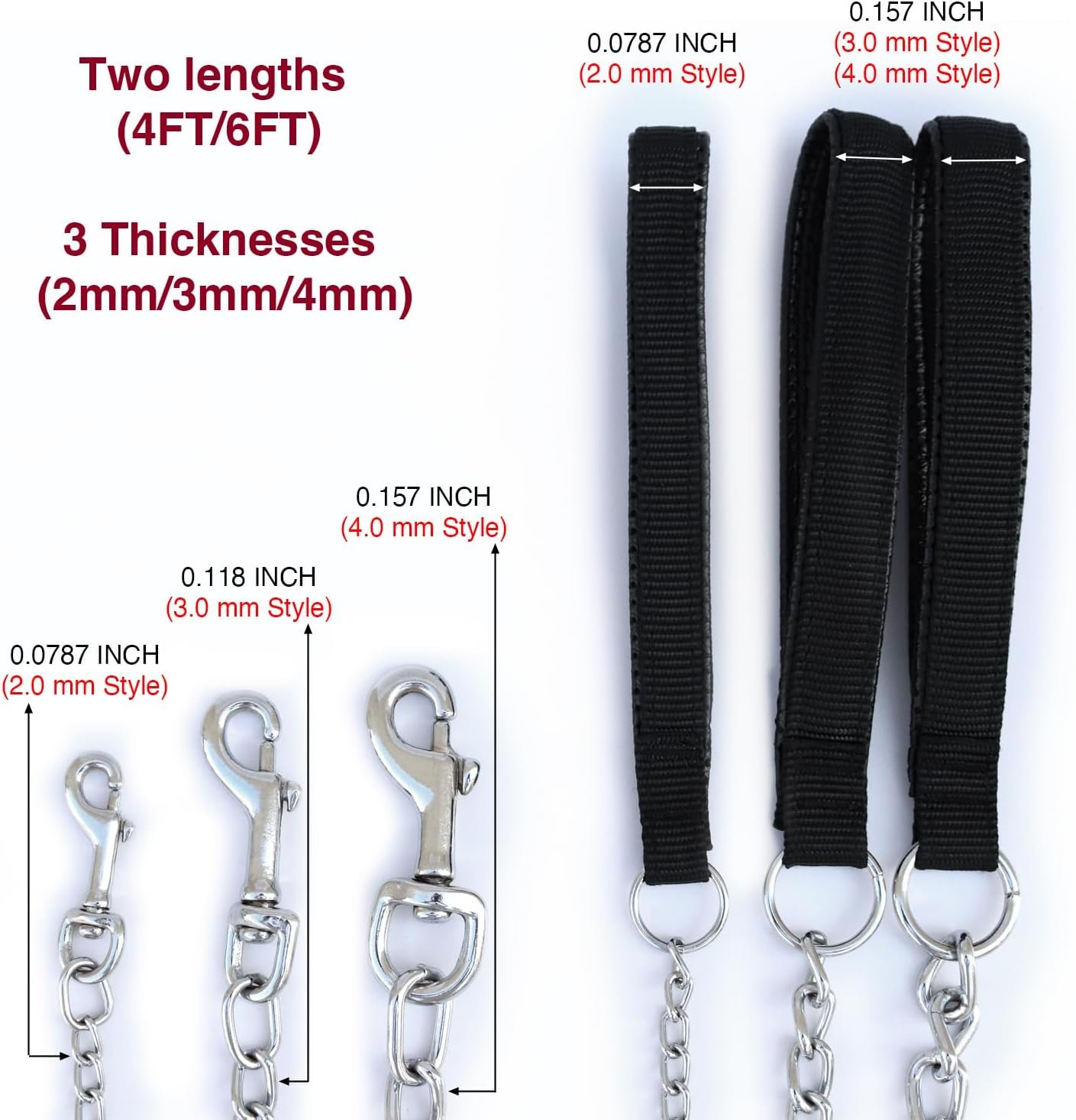 Heavy Duty Metal Dog Leash, Chew Proof Pet Leash Chain with Soft Padded Handle for Large & Medium Size Dogs, 4ft or 6ft (Black, 6FT x 3MM)