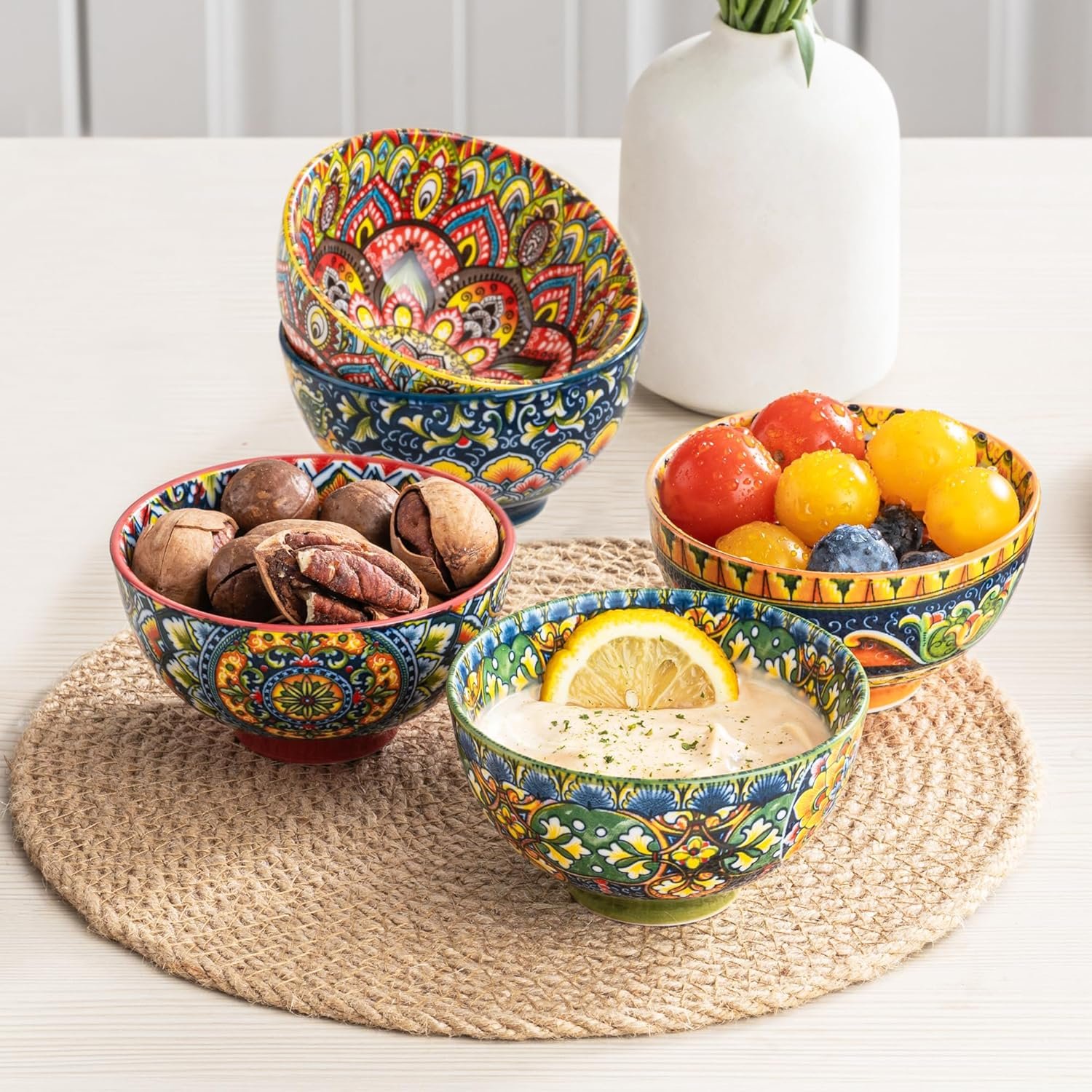 Ceramic Small Bowls Set, Bohemia 3.75 Inch Bowls Set of 6, 6.5 oz Porcelain Bowls for Kitchen, Snack, Sugar, Sauce, Microwave & Dishwasher Safe