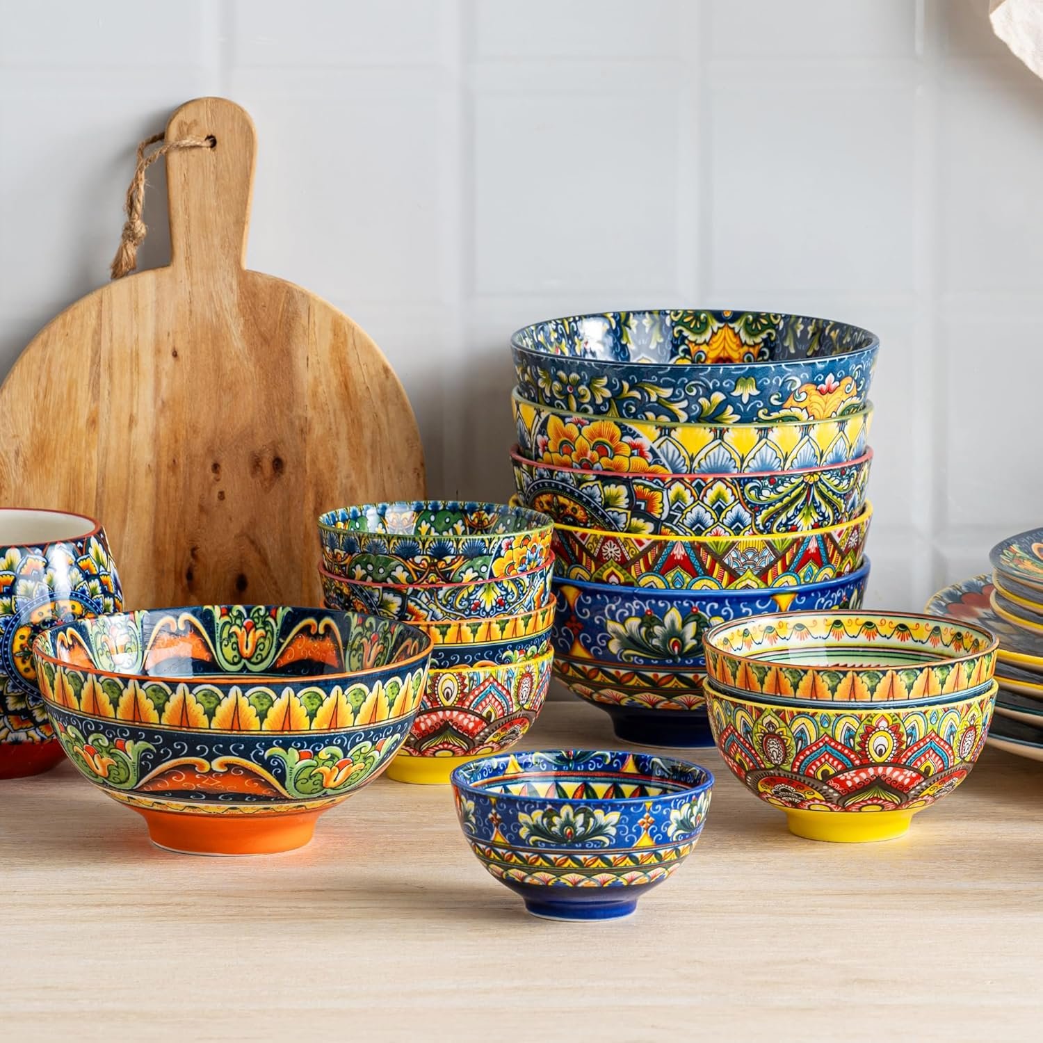 【Coloful Ethnic】 With bohemian patterns inside and out, this salsa bowl is a functional work of art. It elevates dining with eye-catching style and everyday practicality.