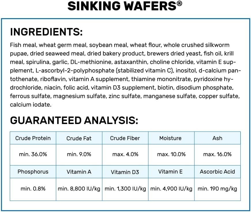 Sinking Wafers were specifically developed for corydoras catfish, loaches and other bottom feeders after extensive research into their nutritional requirements and eating habits. Keep them active and in ideal form with Sinking Wafers!