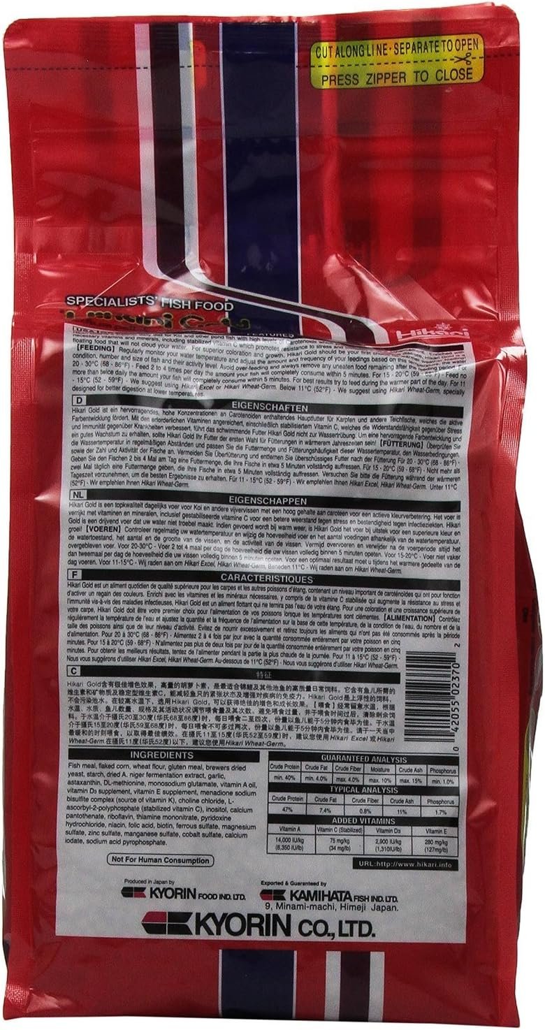 Hikari Gold is a daily diet, developed through years of koi breeding and showing, to meet the nutritional needs of koi