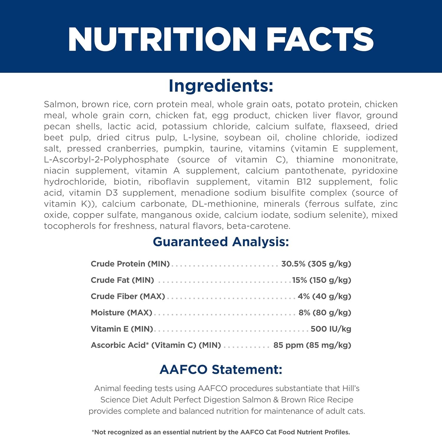 Hill’s Science Diet Adult Perfect Digestion Salmon, Brown Rice & Whole Oats Recipe Dry Cat Food 1.58 kg Bag