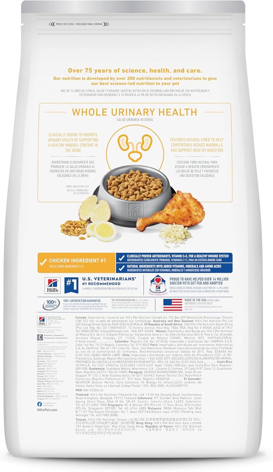 Hill’s Science Diet Adult Urinary Hairball Control Chicken & Rice Recipe dry cat food actively supports the health of the whole urinary system. This cat food is clinically shown to promote urinary health by supporting a healthy mineral content in the urine. This dry food is also formulated with natural fiber to help comfortably reduce hairballs and support healthy digestion.
