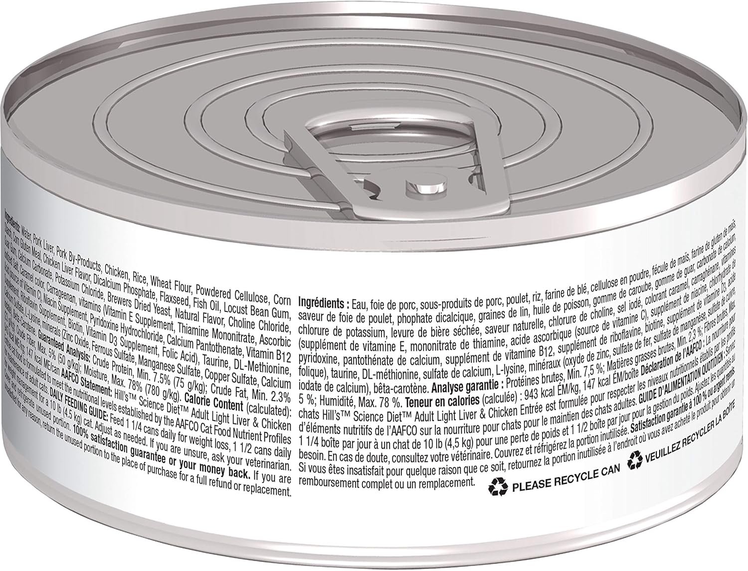 Hill’s Science Diet Light, Adult 1-6, Weight Management Support, Wet Cat Food, Liver & Chicken Minced, 5.5 oz Can, Case of 24