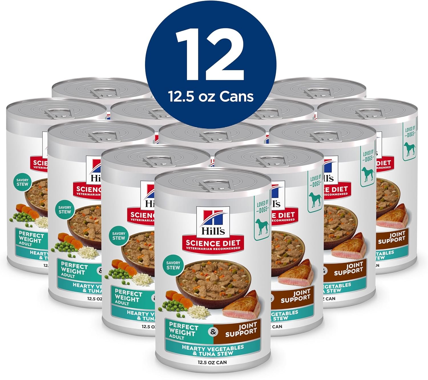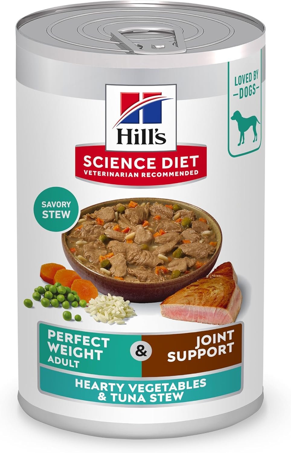 Hill’s Science Diet Perfect Weight, Adult 1-6, Weight Management Support, Wet Dog Food, Tuna & Vegetables Stew, 12.5 oz Can, Case of 12