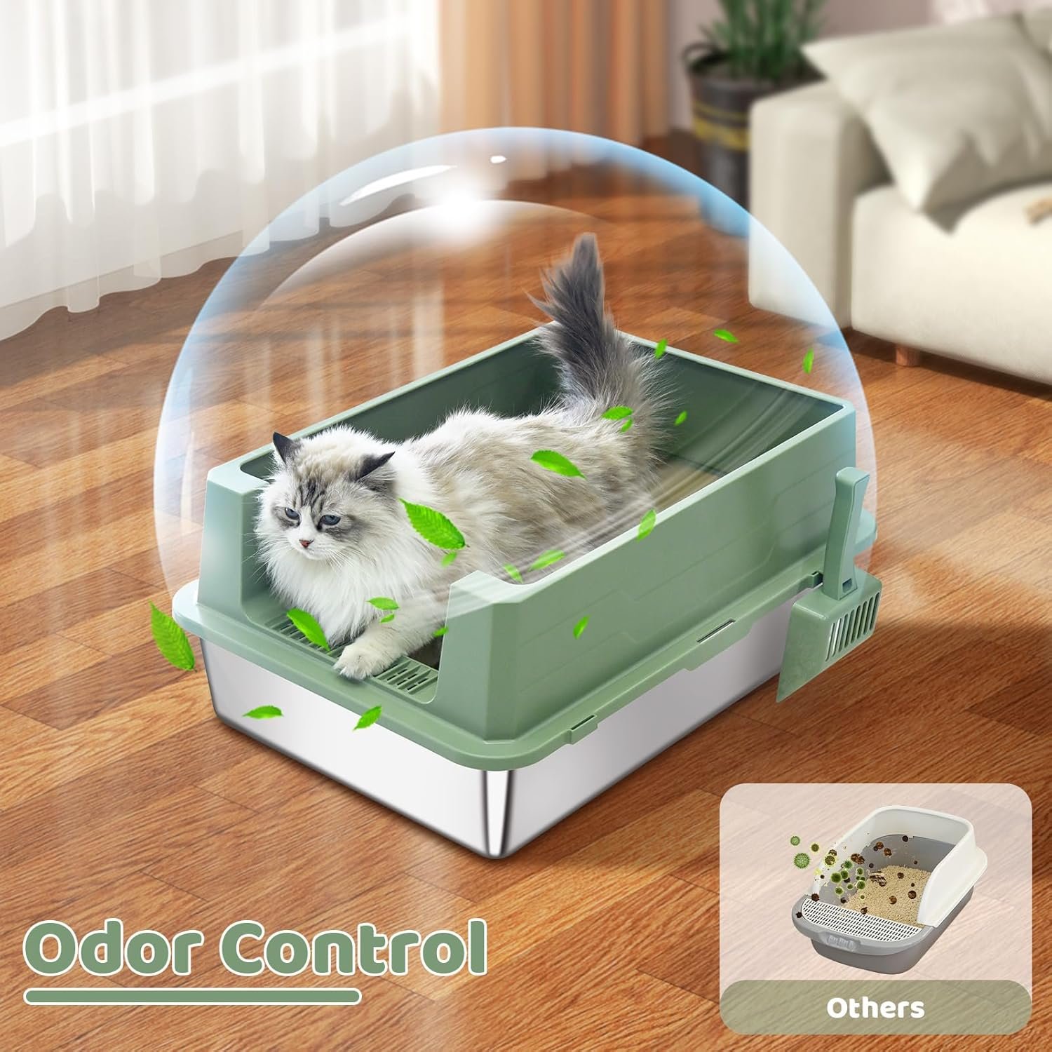 Easy to Clean and Odor Control: Our metal litter box is made up of upgraded stainless, that is stickless with smooth surface and easy to clean. And the stainless material of xxl cat litter box for big cats doesn’t absorb any odors protect odors from lingering, so that the xl litter boxes for big cats can providing a clean and fresh space for you cat