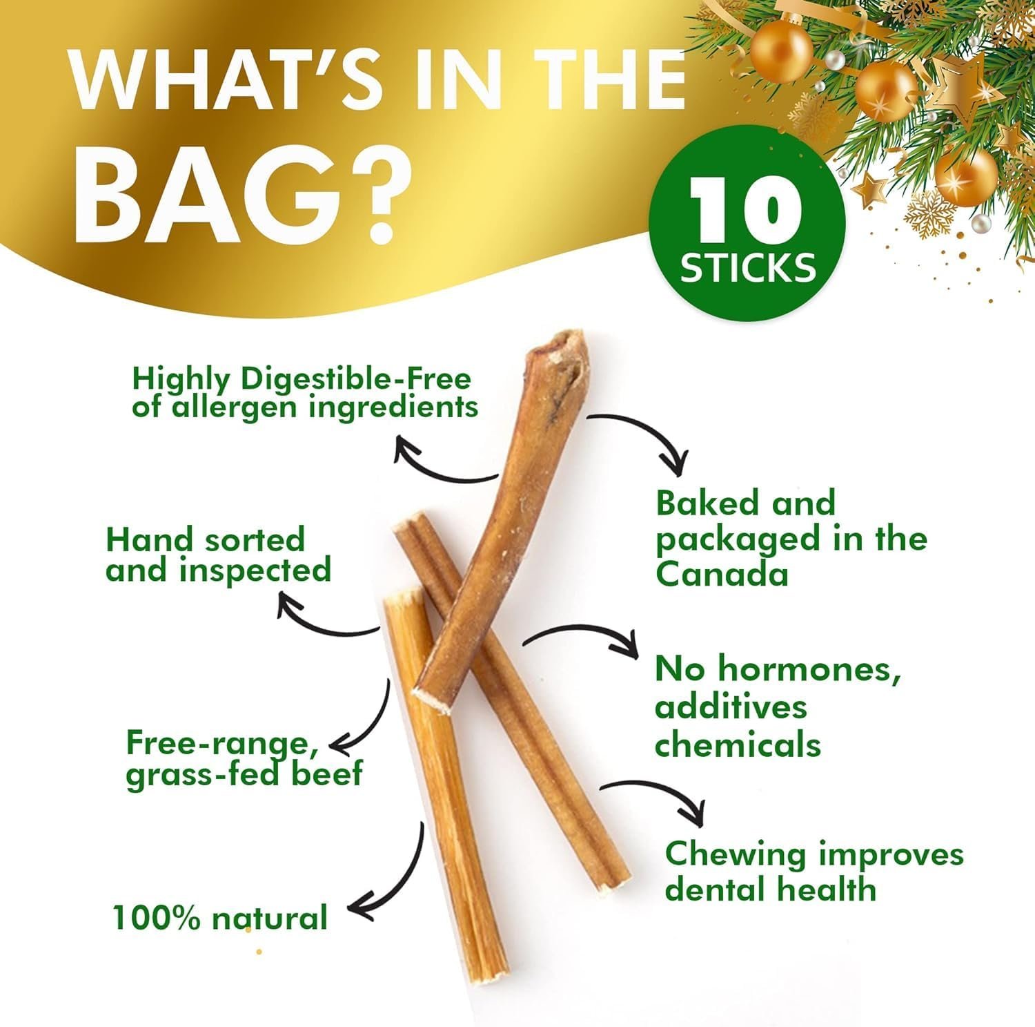 Hulk Pet 6-inch Bully Sticks for Dogs (Pack of 10) 225g Natural Scent & Long Lasting Dog Dental Chew Made of Beef Pizzle Sourced from Grass-Fed Cattle with No Artificial Flavor or Preservative