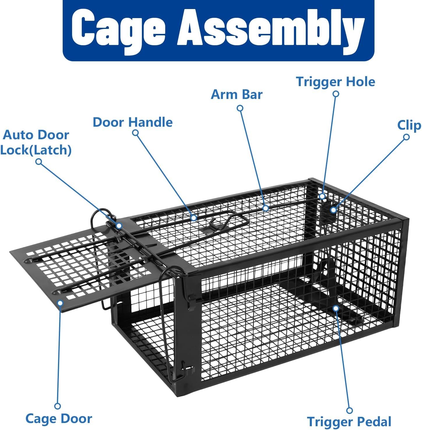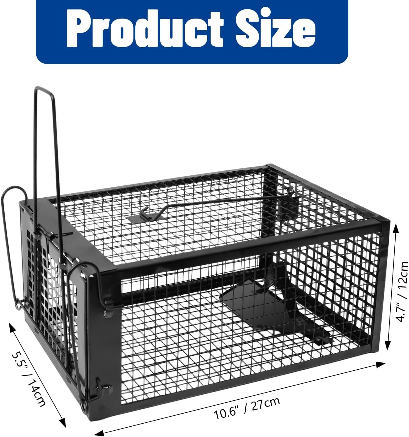 Durable & Secure Construction: Built with sturdy reinforced wire mesh, this rat cage trap ensures captured animals cannot chew their way out. The automatic locking door slams shut instantly upon trigger, preventing escapes for a reliable trapping experience.