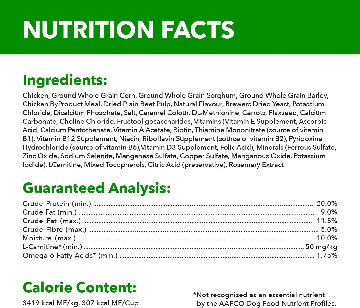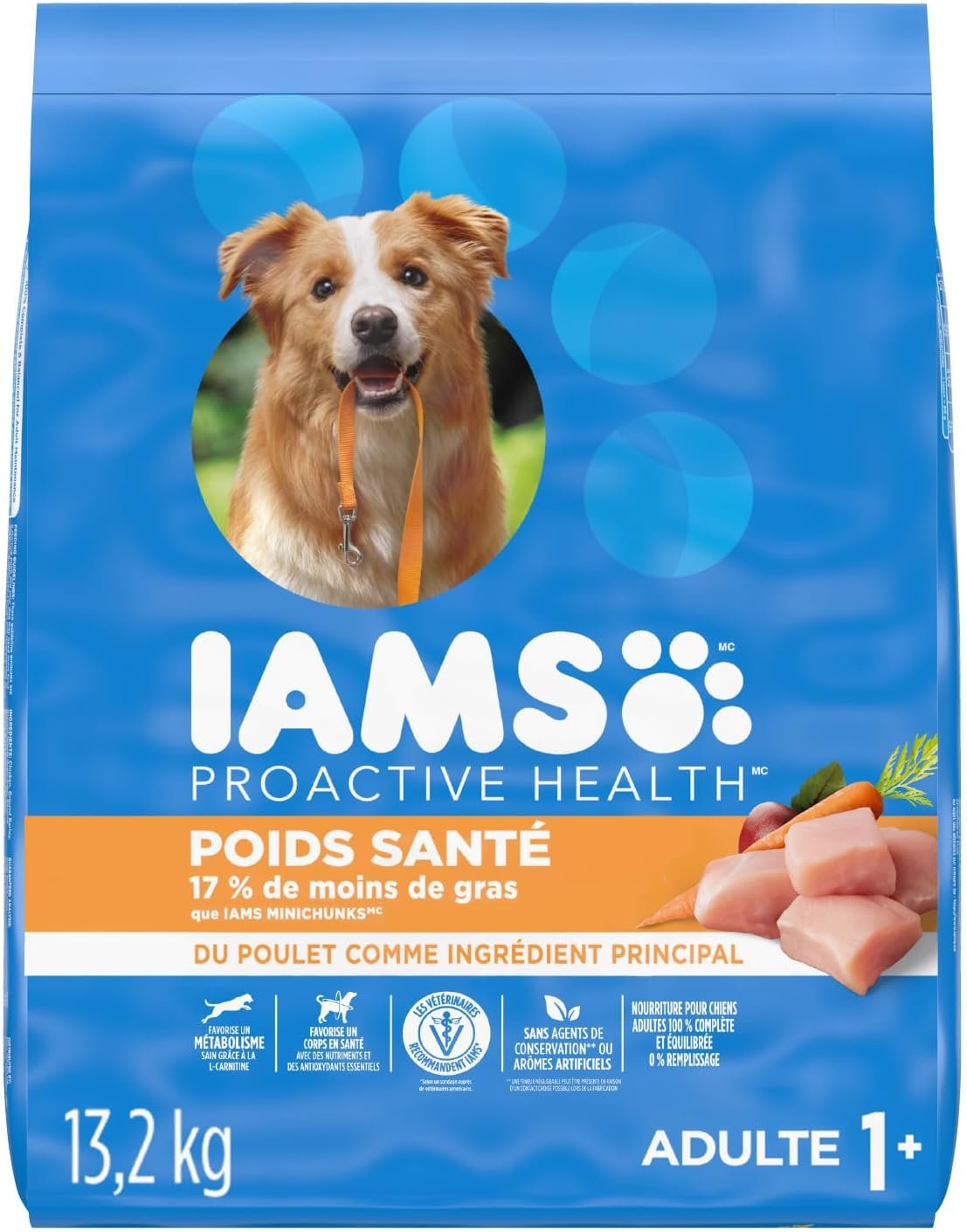 IAMS PROACTIVE HEALTH HEALTHY WEIGHT supports your dog in returning to a healthy weight with fat-burning L-carnitine that helps turn fat into energy, providing a path to keep them fit for life. This adult dry dog food is complete and balanced, with no artificial preservatives and no artificial flavours. Boasting real, lean, farm-raised chicken as the #1 ingredient, the formula also contains whole grains for energy, and beet pulp for healthy digestion. At IAMS, we understand that not all dogs are the same, so why feed them the same generic food? IAMS understands that every dog is different, and we respect those differences. That’s why IAMS provides a wide range of premium recipes tailored to meet the unique needs of all dogs so that they can be at their best today and every day. Feel good about the food you choose and see the IAMS difference in your dog.