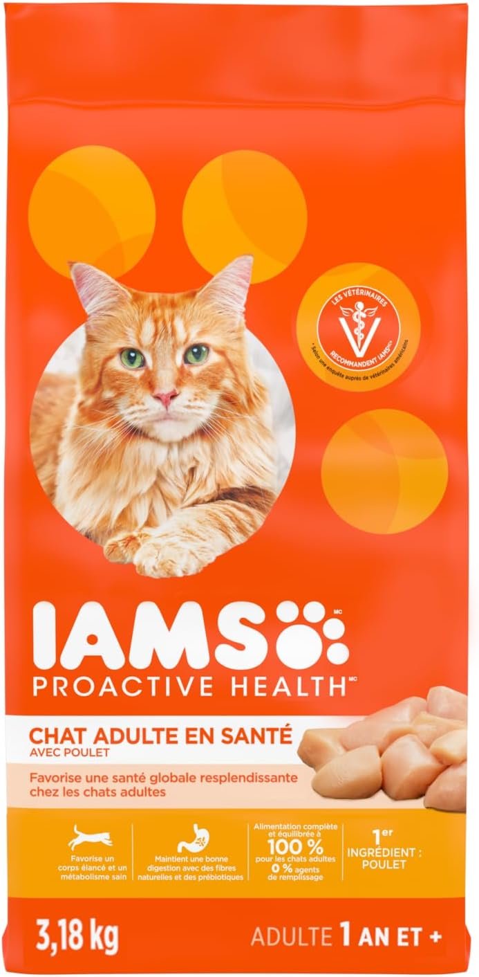 IAMS PROACTIVE HEALTH Healthy Adult Dry Cat Food – Chicken – 3.18KG (7LB) Bag