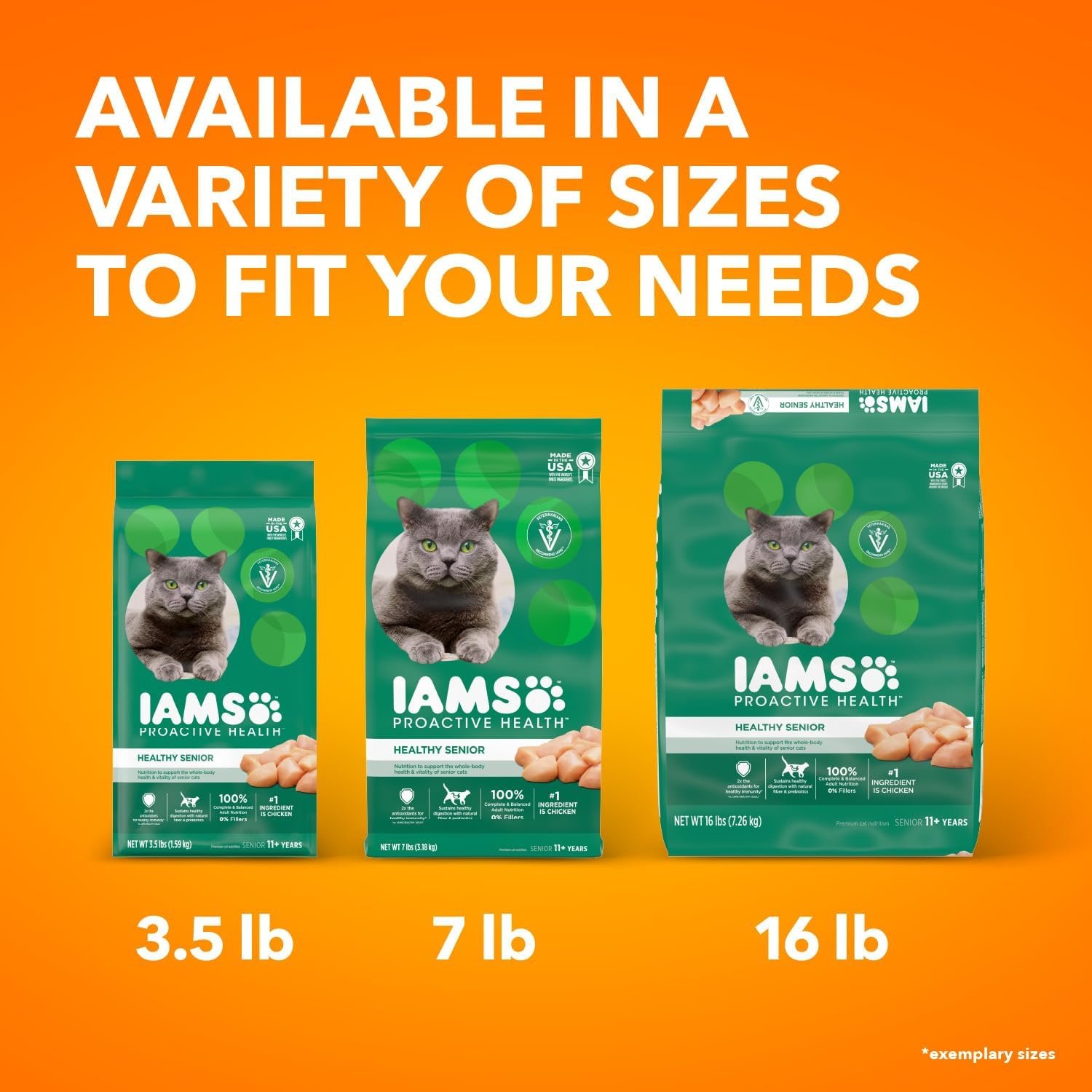 Support your mature cat and keep them at their prime with IAMS Proactive Health dry cat food for senior cats 11 years+. Designed for indoor or outdoor cats, IAMS Proactive Health has chicken as the no.1 ingredient and supports complete health, including muscles, bones, joints, teeth, and heart. High-quality protein helps your senior cat maintain lean and healthy muscles, while the crunchy kibble texture reduces plaque buildup. Formulated with natural fibre and prebiotics to sustain healthy digestion, 2x the antioxidants for healthy immunity, and zero fillers. Feel good about the food you choose and see the IAMS difference in your senior cat. IAMS is dedicated to helping cats live long and healthy lives. Through years of observing cat behaviour, combined with research and dietary findings, IAMS cat food delivers benefits in great-tasting recipes your feline friend will adore. Feel good about the food you choose and see the IAMS difference in your cat.