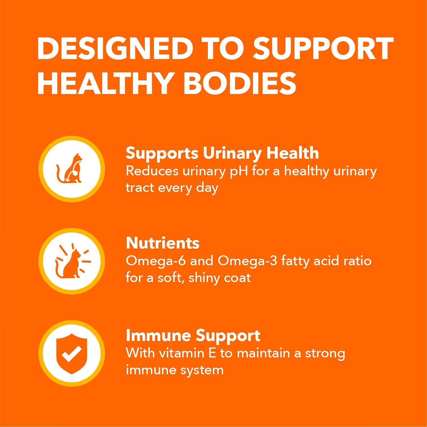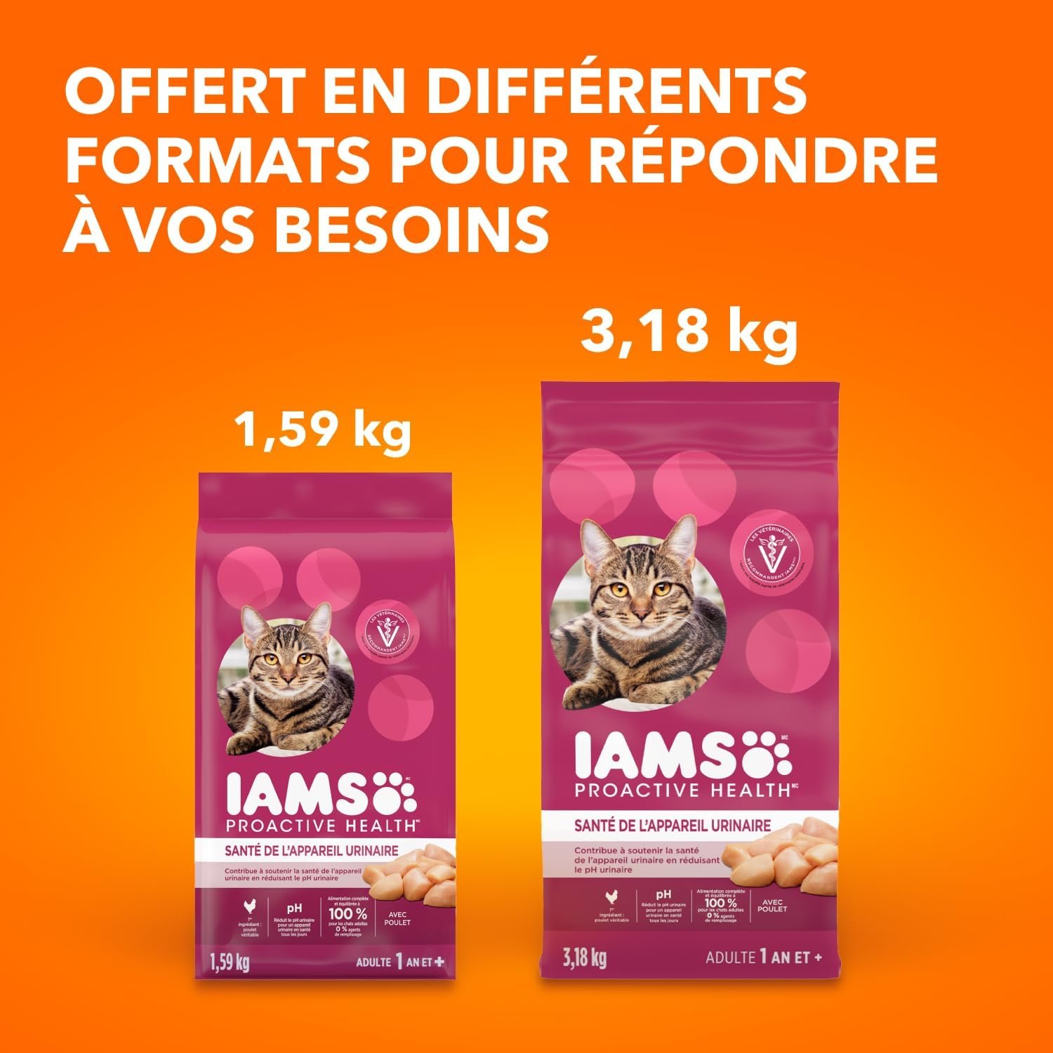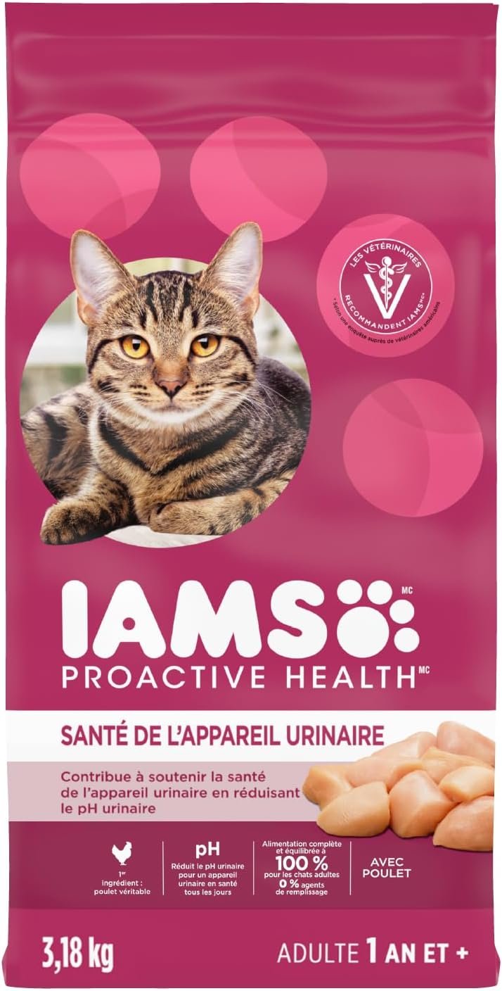 IAMS Urinary Tract Health Dry Cat food for adult cats is designed to support a healthy urinary tract. For outdoor or indoor cats, the recipe helps reduce the pH in urine to promote urinary health. Made with high-quality protein (chicken is the #1 ingredient) to help support strong muscles, the crunchy kibbles include vitamin E to maintain a healthy immune system and essential nutrients – like calcium and potassium for a healthy heart – and the optimal omega-6 to omega-3 fatty acid ratio for a soft, shiny coat. IAMS is dedicated to helping cats live long and healthy lives. Through years of observing cat behaviour, combined with research and dietary findings, IAMS cat food delivers benefits in great-tasting recipes your feline friend will adore. Feel good about the food you choose and see the IAMS difference in your cat.
