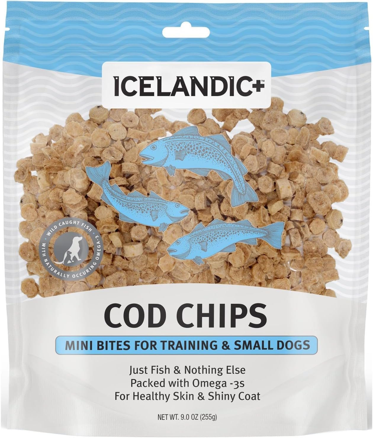 Icelandic+ Mini Fish Chips: Cod 9oz – Dog Treats, for Training & Small Dogs, 2 Ingredient Air-Dried Crunchy Chips