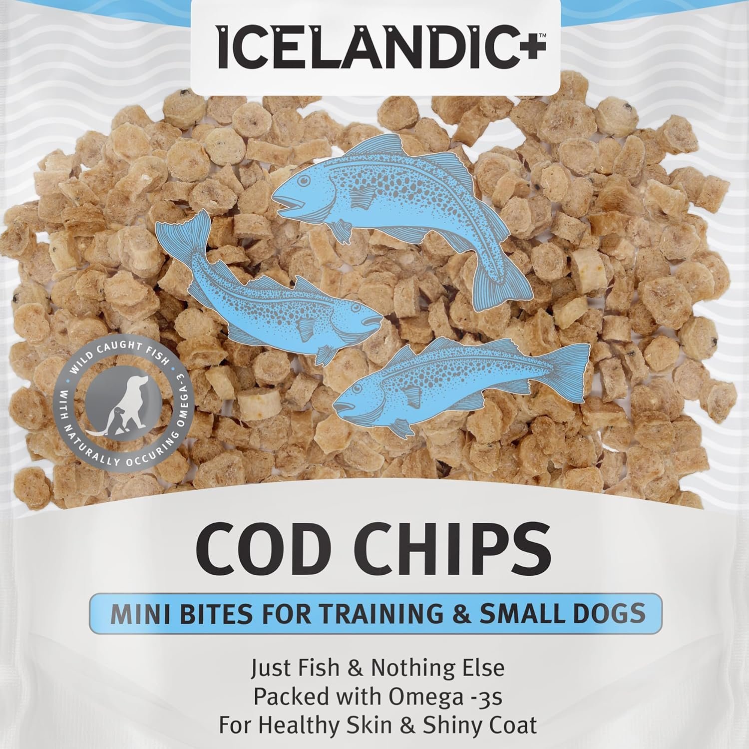 ICELANDIC+ MINI FISH CHIPS: COD – 9OZ – With our Mini Cod Fish Chips, you can treat your dog to a crunchy, all-natural snack that features just one ingredient—pure Icelandic cod (no additives, no preservatives and no supplements). They’re caught daily in the icy-cold waters of Iceland and are processed immediately for freshness you can count on without a heavy fishy smell. A rich source of Omega-3 fatty acids, these delectable dog treats promote healthy skin and a shiny coat. They also offer dental benefits, reducing tartar and plaque build-up for healthier gums and teeth. With a single source of protein—100% natural and edible Icelandic cod—these tasty treats are easy to digest and ideal for dogs with food sensitivities. The Mini Cod Fish Chips are a small bite and the perfect size for training or small dogs. These are the perfect training treat – they fit in your pocket and don’t crumble or turn to mush like other treats. No flaking or breaking or falling apart. They are also the perfect tracking treat and while not an overpowering smell, the dogs go nuts for them. – D. Owens who is a Dog Trainer for 27+ years and thousands of obedient dogs, trainer for TV and Film, police dogs, show events, and a trainer of dog trainers.