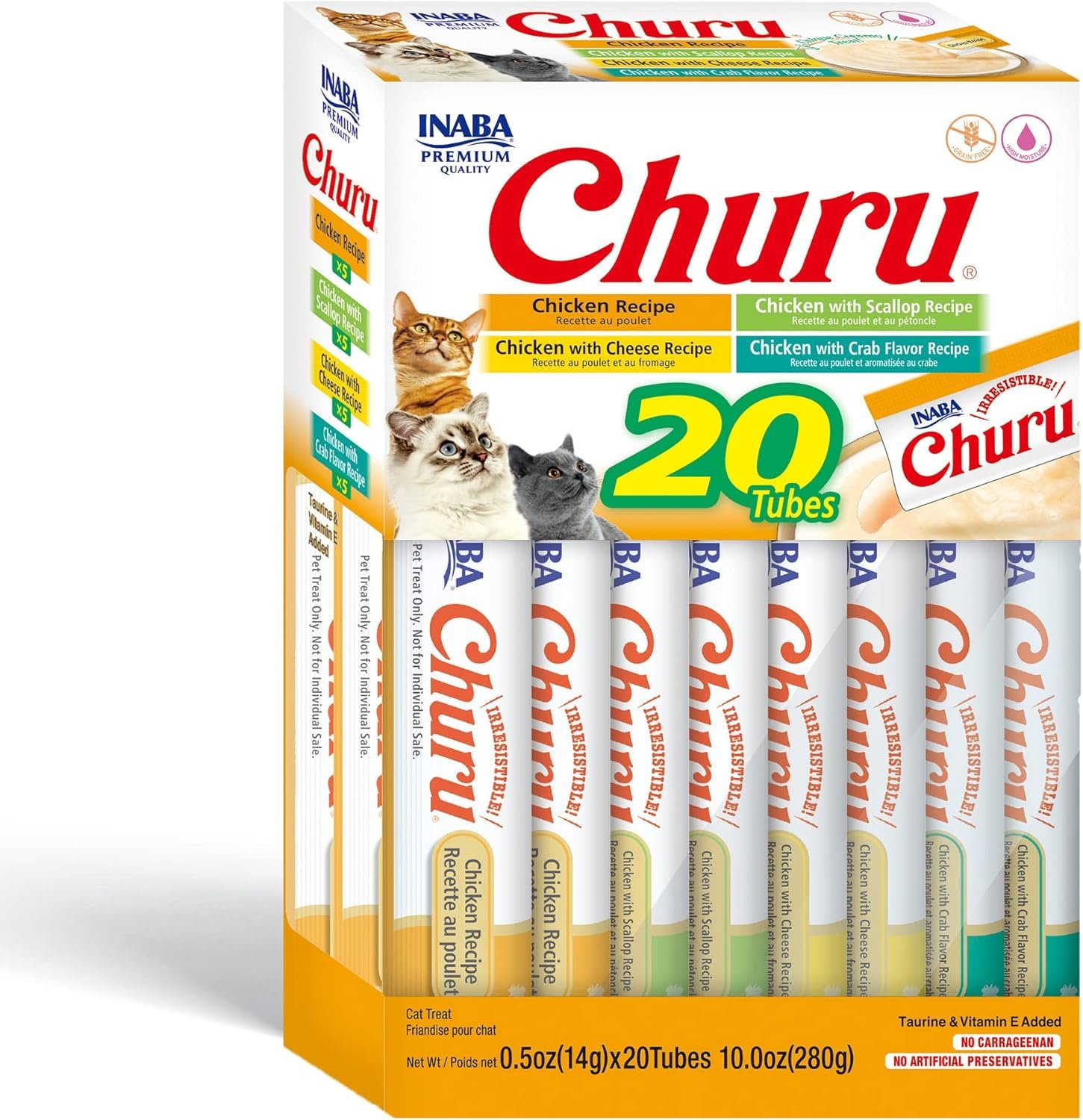 INABA Churu Cat Treats, Grain-Free, Lickable, Squeezable Creamy Purée Cat Treat/Topper with Vitamin E & Taurine, 0.5 Ounces Each Tube, 20 Tubes, Chicken Variety Box
