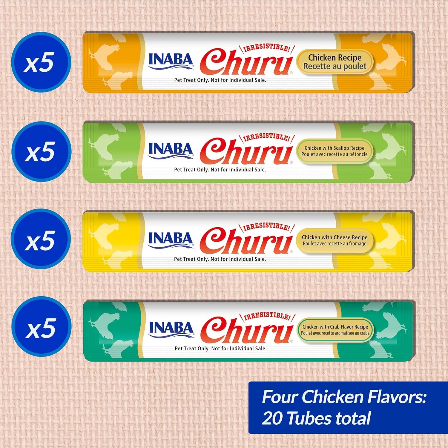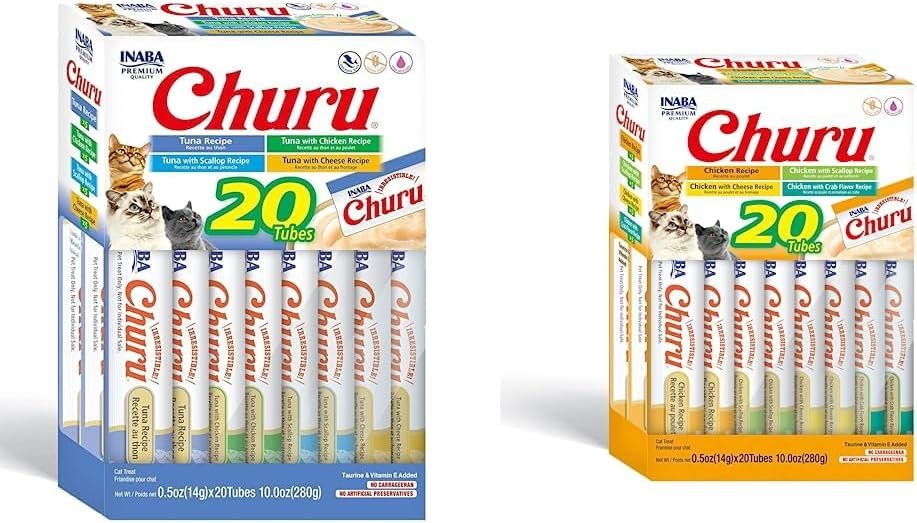 Be the first to review “INABA Churu Cat Treats, Grain-Free, Lickable, Squeezable Creamy Purée Cat Treat/Topper Tuna + Chicken Variety Box (20 Tubes Each)”