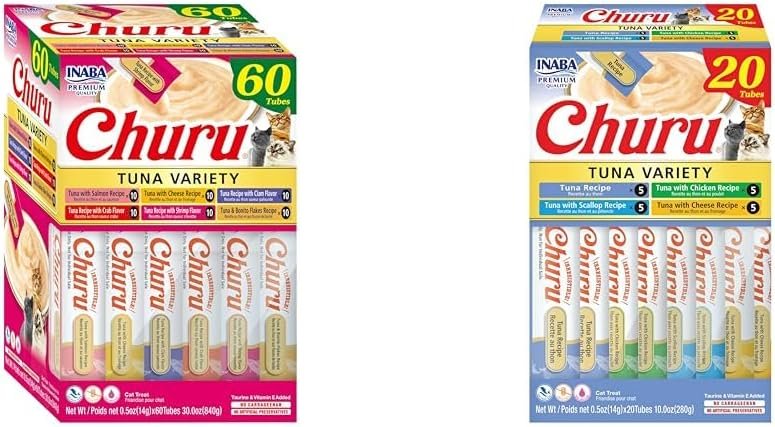 Product 1: KEEP YOUR FELINE HYDRATED WITHOUT ADDING CALORIES: Each delicious, creamy Churu tube contains 91% moisture and only 6 calories (a tenth of the calories of traditional dry cat treats), which makes it a healthy snack you can feel good about feeding