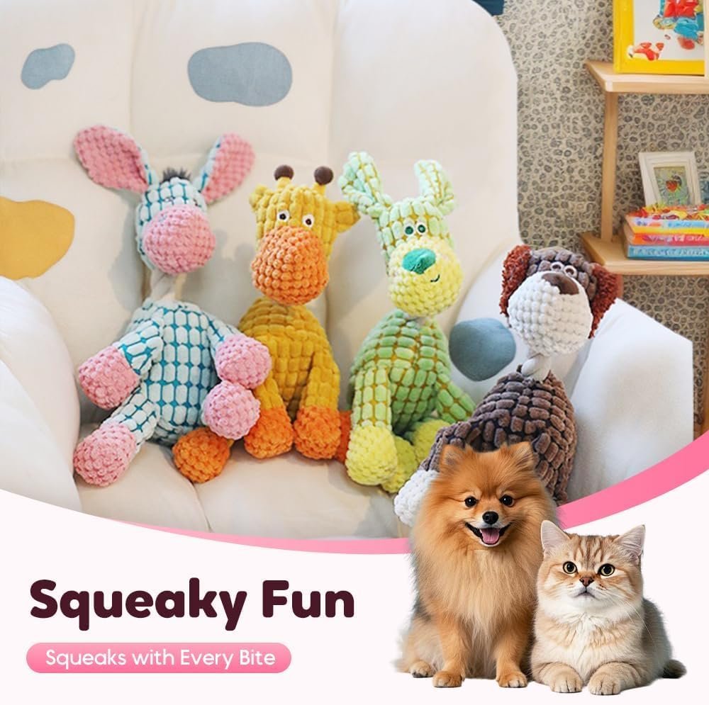 【Multifunctional Pet Toy】Designed to serve as a chew toy, tug-of-war companion, and a cozy pillow, this giraffe dog toy adapts to various play styles. Its multifunctional design suits puppies and medium dogs, making it an essential plush chew toy for teething and cuddling.