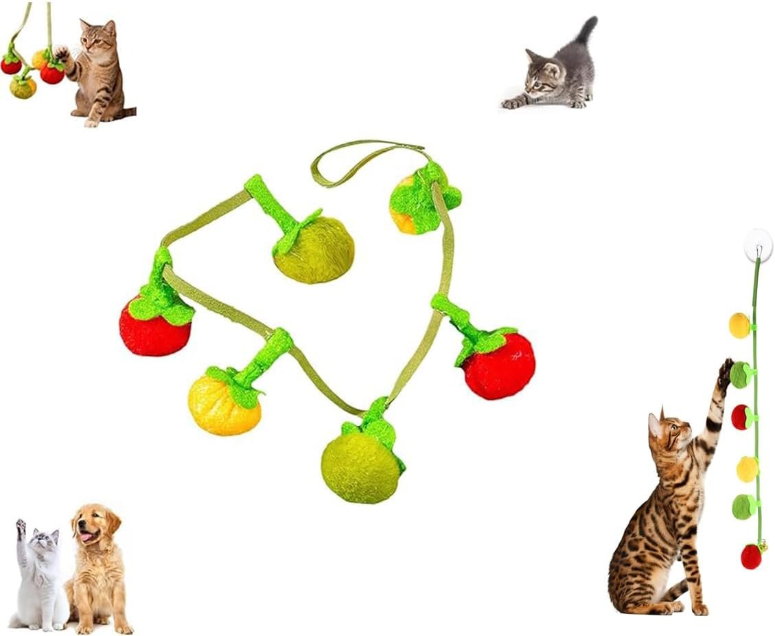 This playful toy string features soft felt tomatoes and persimmons, each filled with natural catnip and equipped with a squeaker to entice your cat into lively action. As a perfect fruit-shaped cat lure and chewable cat accessory, it is crafted from non-toxic, durable fabric that stands up to claw grinding and gentle biting, doubling as a dental care tool to support teeth cleaning while satisfying your cat’s instinct to chew. Whether your pet prefers to chase, bat, pounce, or snuggle, this toy delivers endless fun for interactive animal games or solo play, effectively relieving cat anxiety and boredom to keep your furry friend happy and relaxed.
