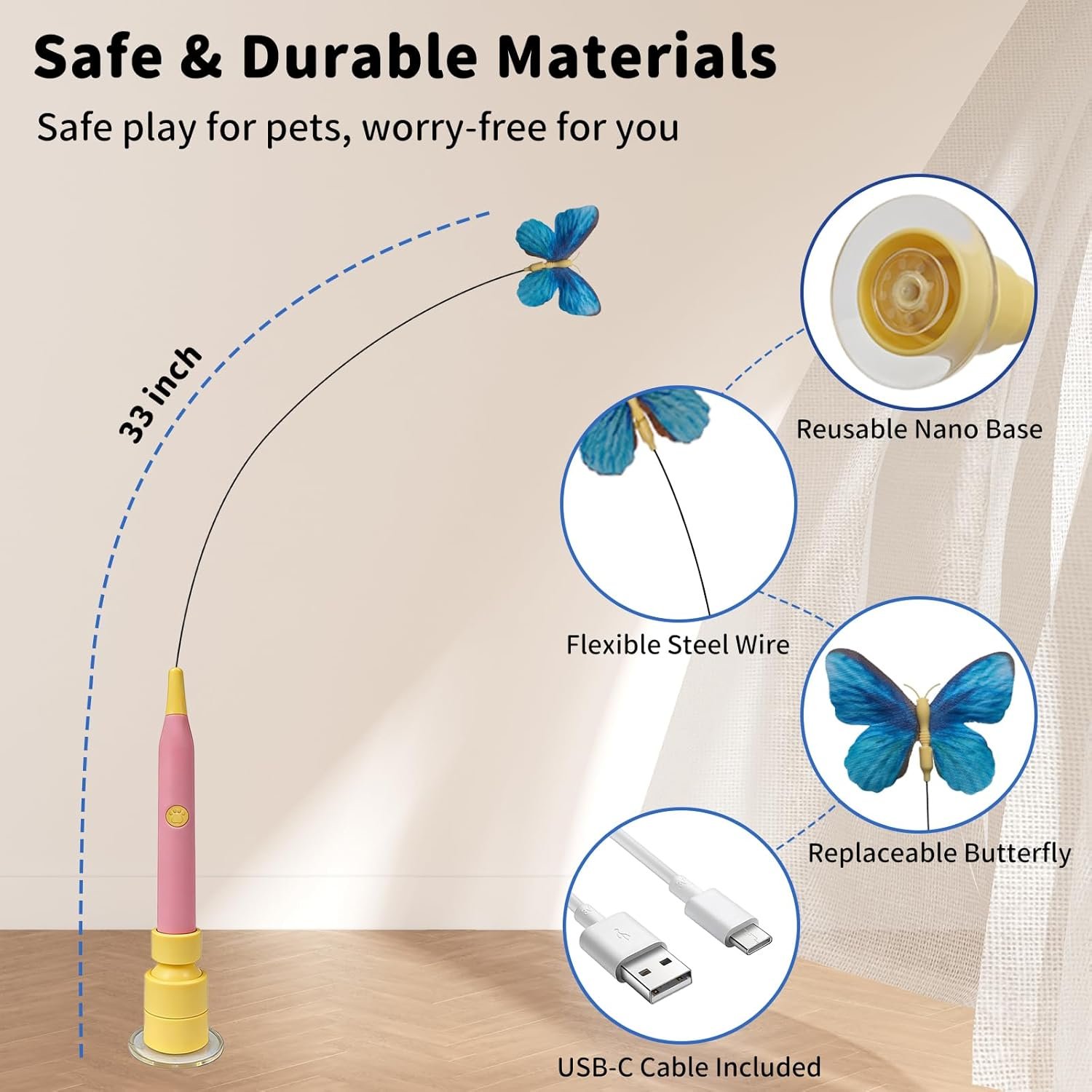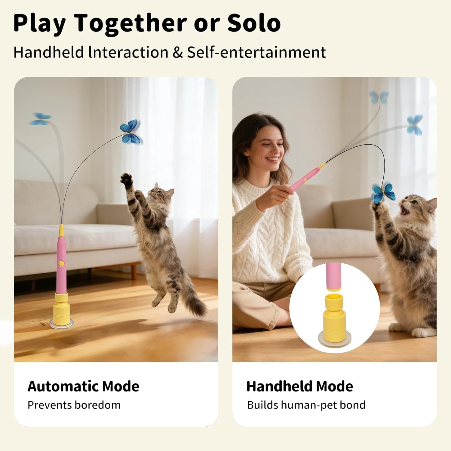 Durable & Apartment-Friendly: Built for everyday play, this compact toy features a stable base, high-elasticity steel wire, and a replaceable, bite-resistant butterfly. Ideal for small spaces, it’s a thoughtful gift for any cat parent with cats of all ages.